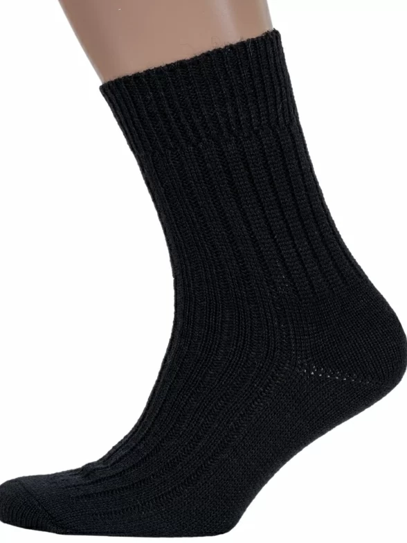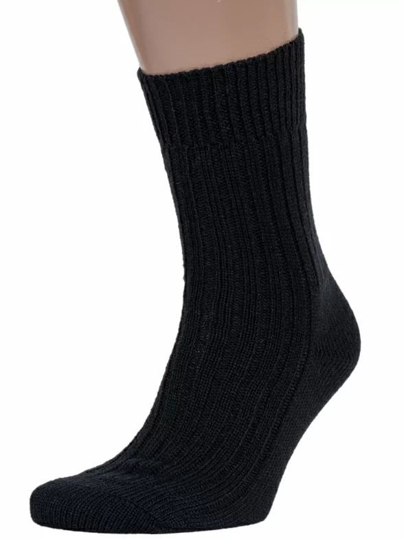 Высокие полушерстяные мужские носки классической длины. Они отличаются рельефной вязкой. Носки хорошо сохраняют тепло, кроме того, они отлично тянутся и не сползают.