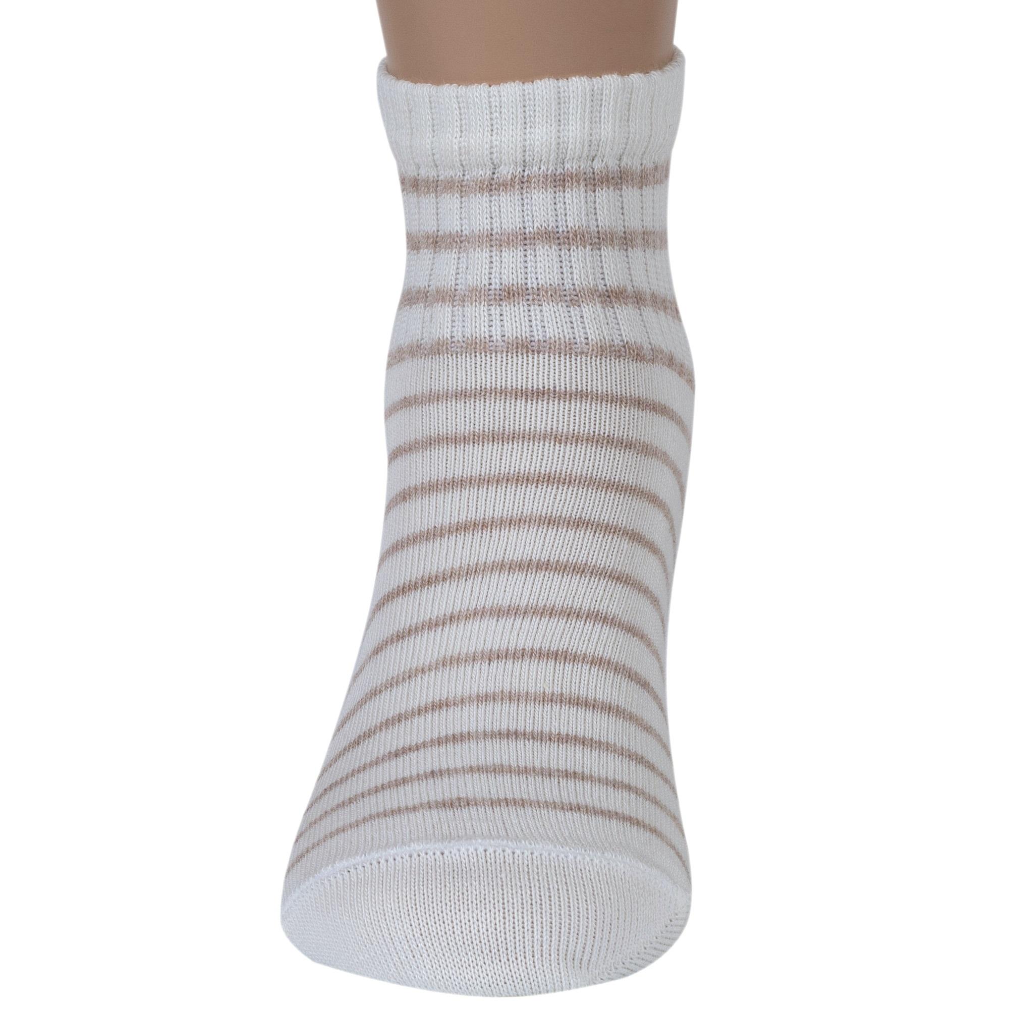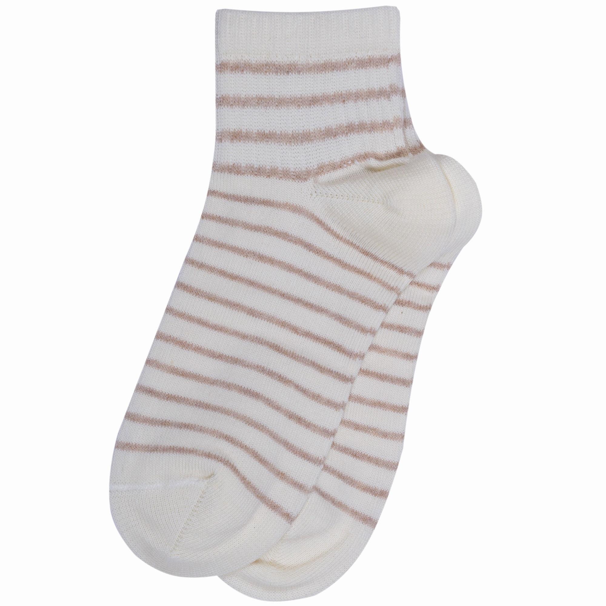 Круглогодичные укороченные детские носки, цвет кремовый-бежевый, повседневные, шов обычный (не бесшовные), принт (рисунок): полоски, с узором, состав: 90% хлопок, 7% полиамид, 3% эластан (лайкра), арт. П35. Производитель «ИП Мурзаков В.А., Ставропольский край, Россия» под брендом «Lorenzline».