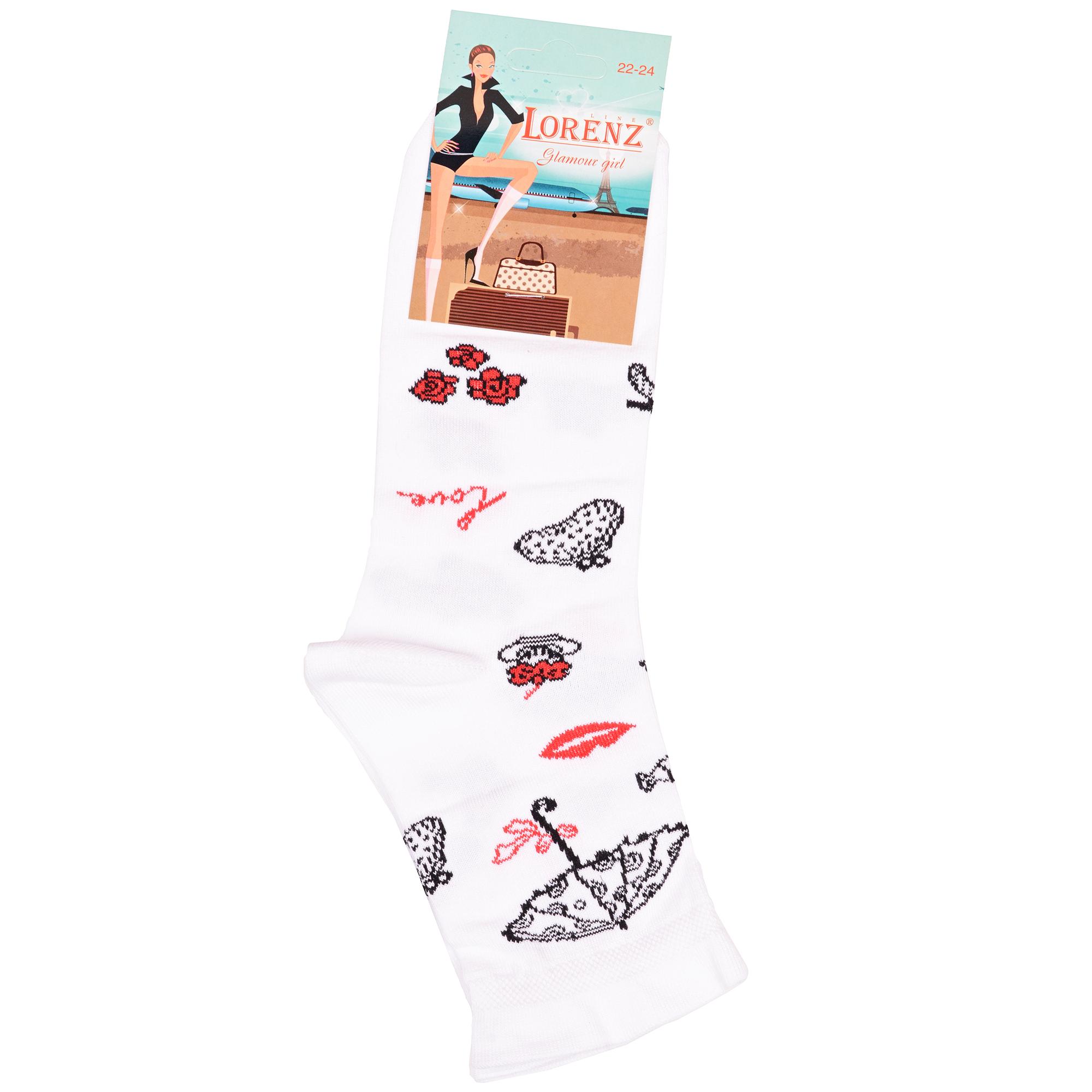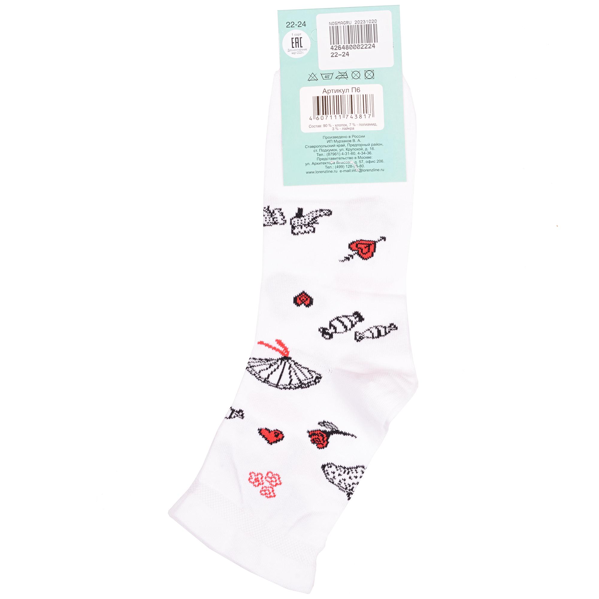 Круглогодичные укороченные детские носки, цвет белый, с принтом, состав: 90% хлопок, 7% полиамид, 3% эластан (лайкра). Производитель «ИП Мурзаков В.А., Ставропольский край, Россия» под брендом «Lorenzline».
