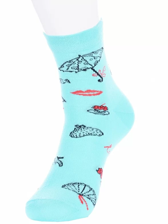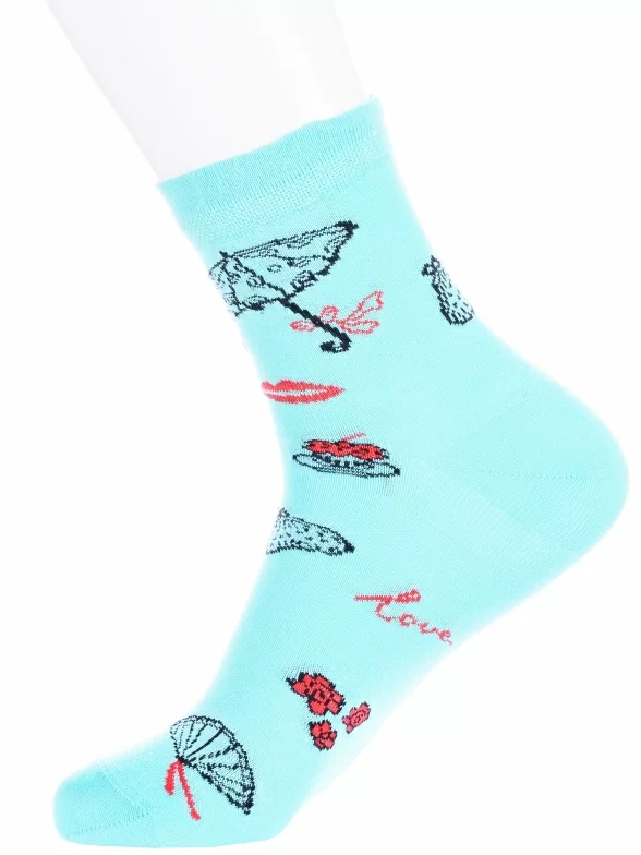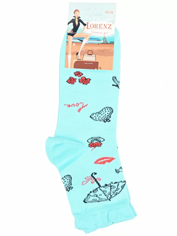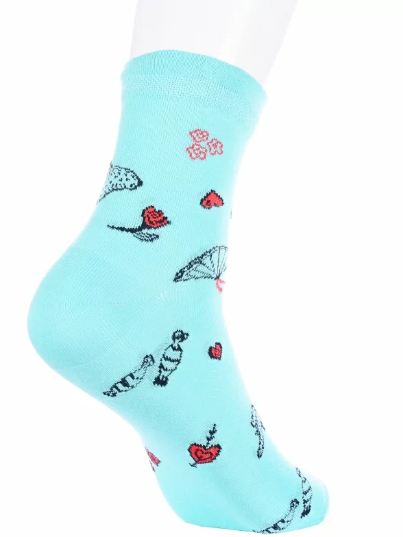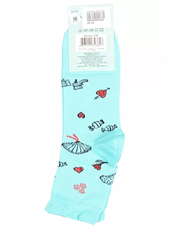 Круглогодичные укороченные детские носки, цвет бирюзовый, с принтом, состав: 90% хлопок, 7% полиамид, 3% эластан (лайкра). Производитель «ИП Мурзаков В.А., Ставропольский край, Россия» под брендом «Lorenzline».