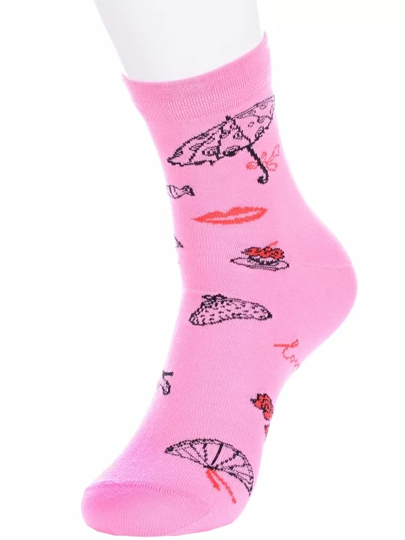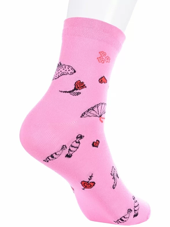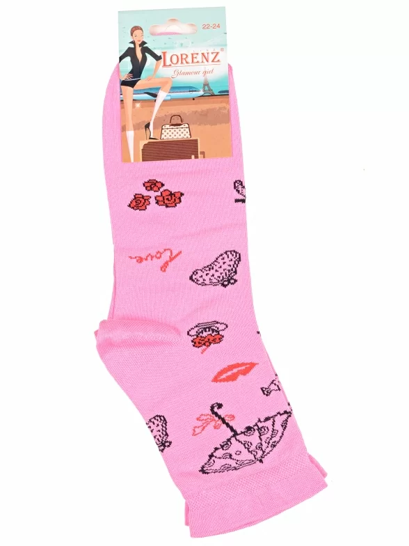 Круглогодичные укороченные детские носки, цвет розовый, с принтом, состав: 90% хлопок, 7% полиамид, 3% эластан (лайкра). Производитель «ИП Мурзаков В.А., Ставропольский край, Россия» под брендом «Lorenzline».