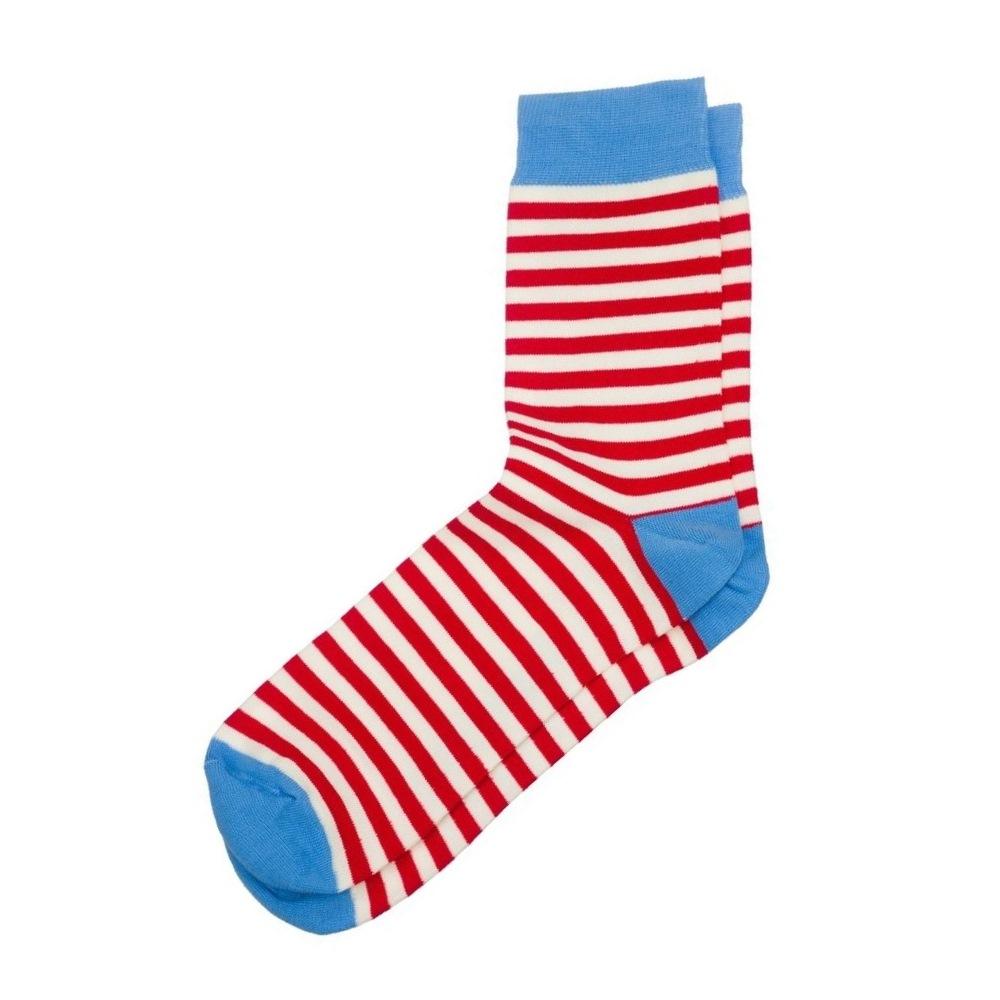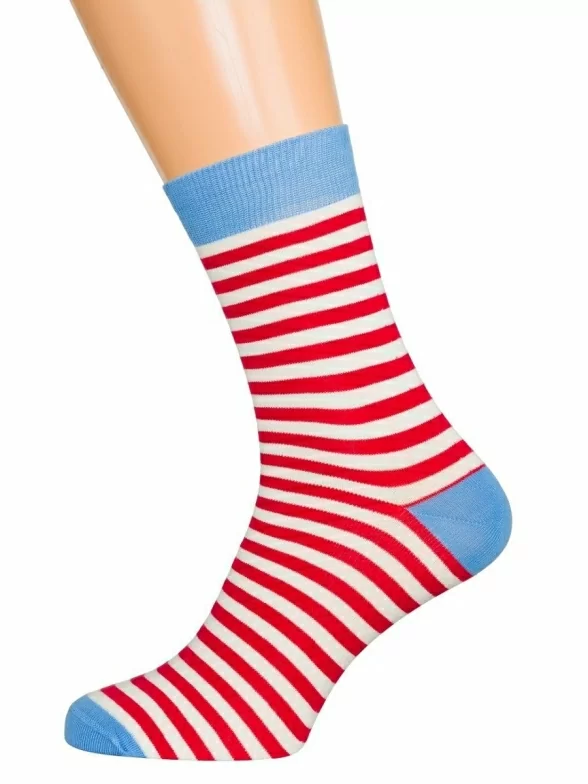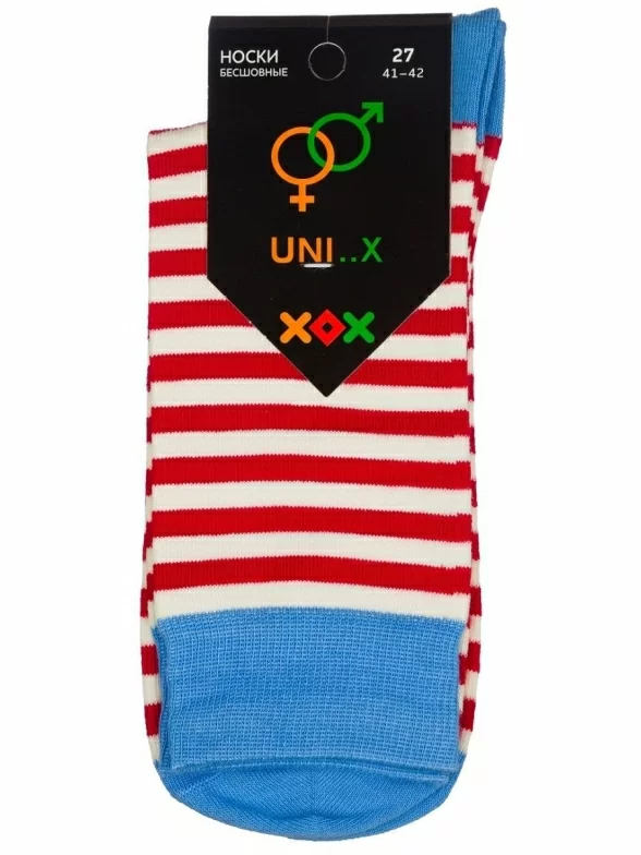 Круглогодичные средней длины носки унисекс, цвет многоцветные (мультиколор)-голубой, повседневные, возможно бесшовные, принт (рисунок): полоски, с узором, состав: 88% хлопок, 10% полиамид, 2% эластан, арт. XF-24. Производитель «ХОХ FANTASY» Россия под брендом «Хох fantasy».