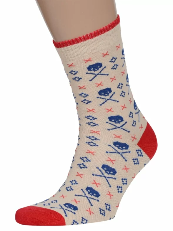 Очень необычные носки, декорированные крестообразными стежками. Носок, пятка и резинка – контрастного цвета. Модель смотрится необычно и отлично сочетается с мужской одеждой в стиле Casual. Носки изготовлены из качественного хлопка.