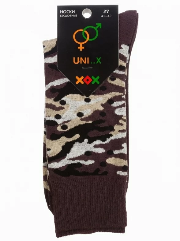 Качественные носки из хлопка ХОХ для повседневного использования. Износостойкие, плотные, эластичные. После стирки сохраняют свою форму и яркость цвета. Не покрываются катышками. Отлично дополнят ваш повседневный образ. Отличительная особенность модели - камуфляжный принт.