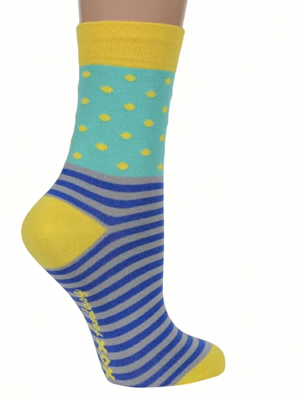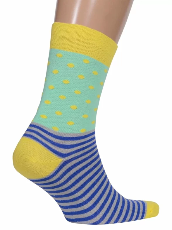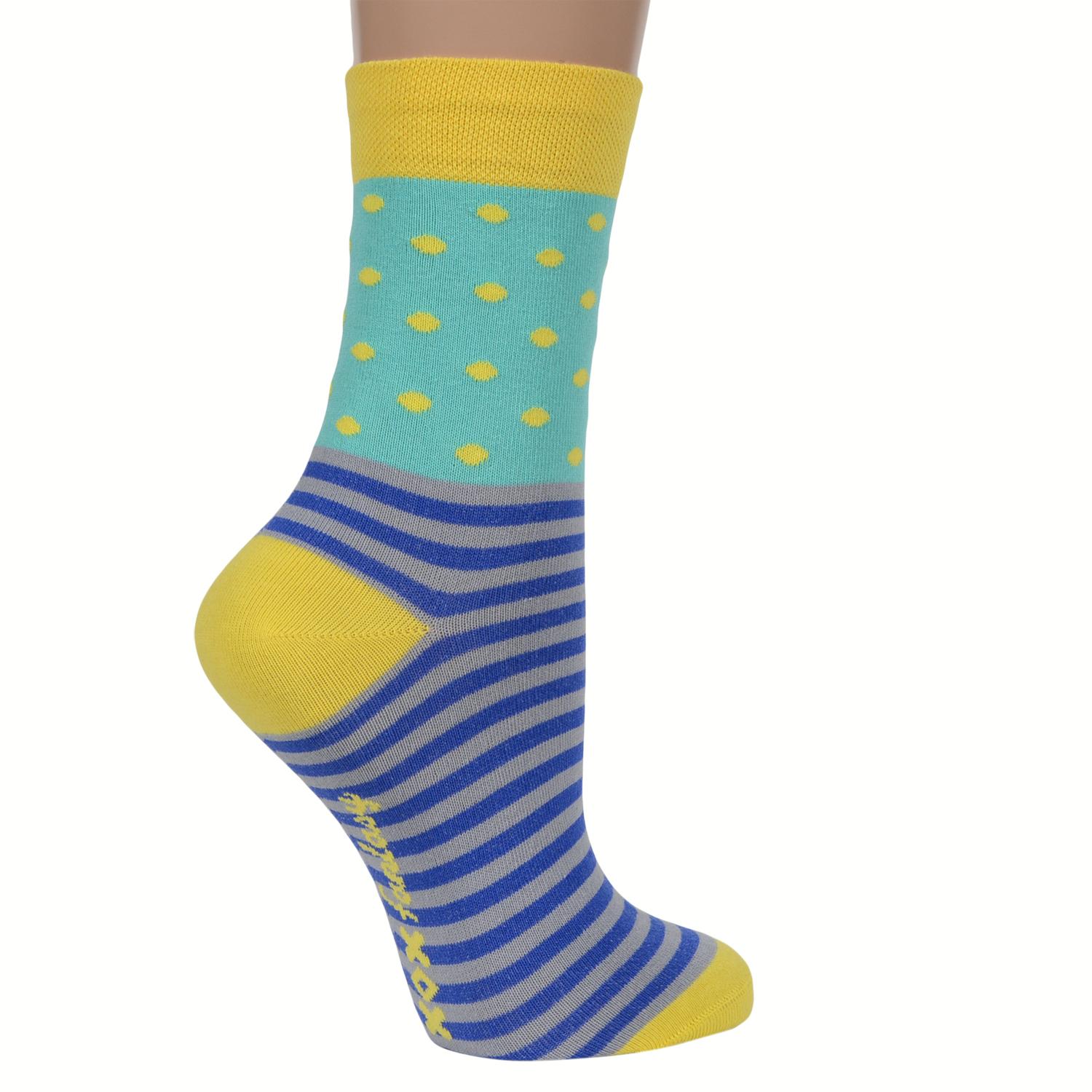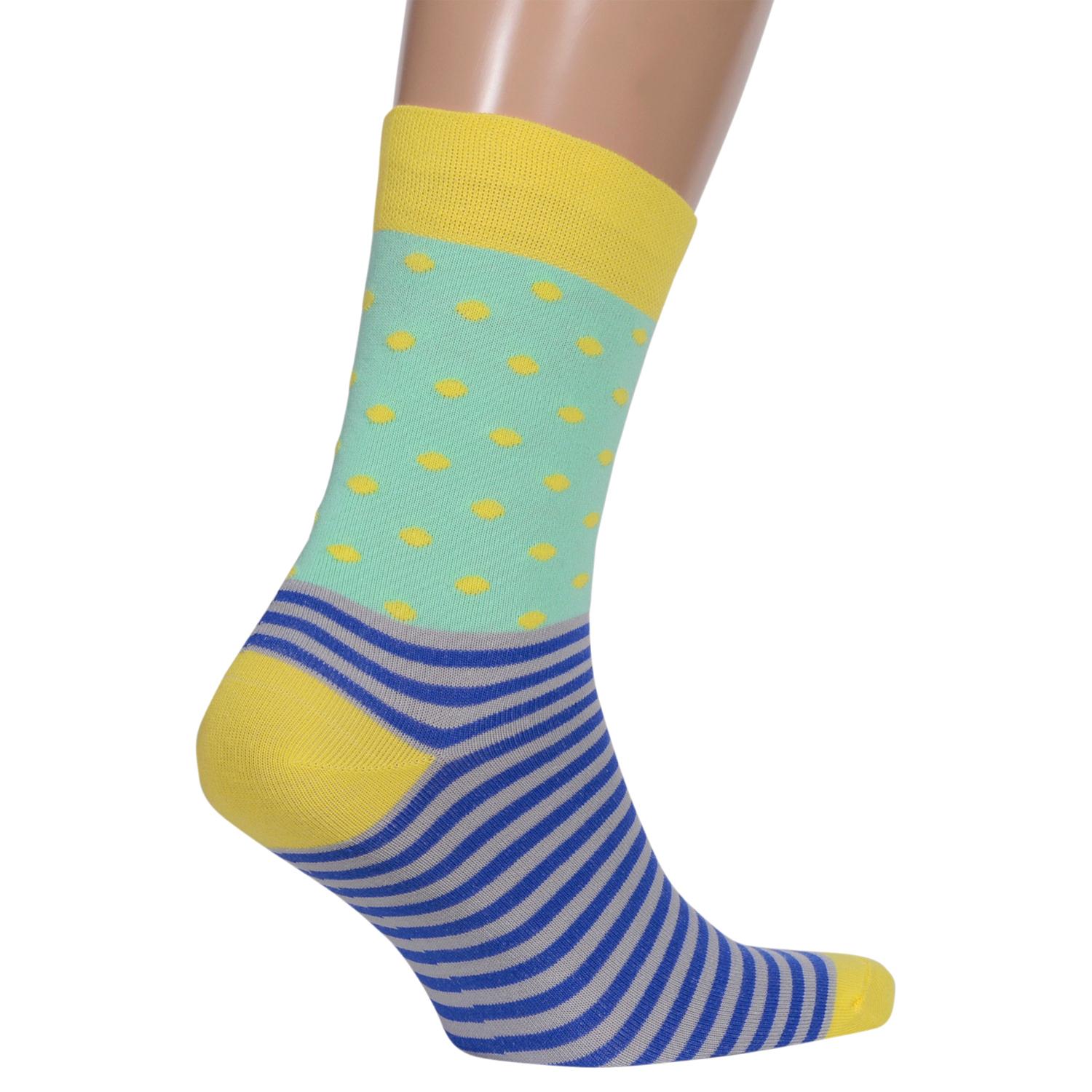 Высококачественные бесшовные носки, изготовленные из плотного хлопка. Модель выполнена в стиле Casual и декорирована контрастными полосками и яркими однотонными деталями.