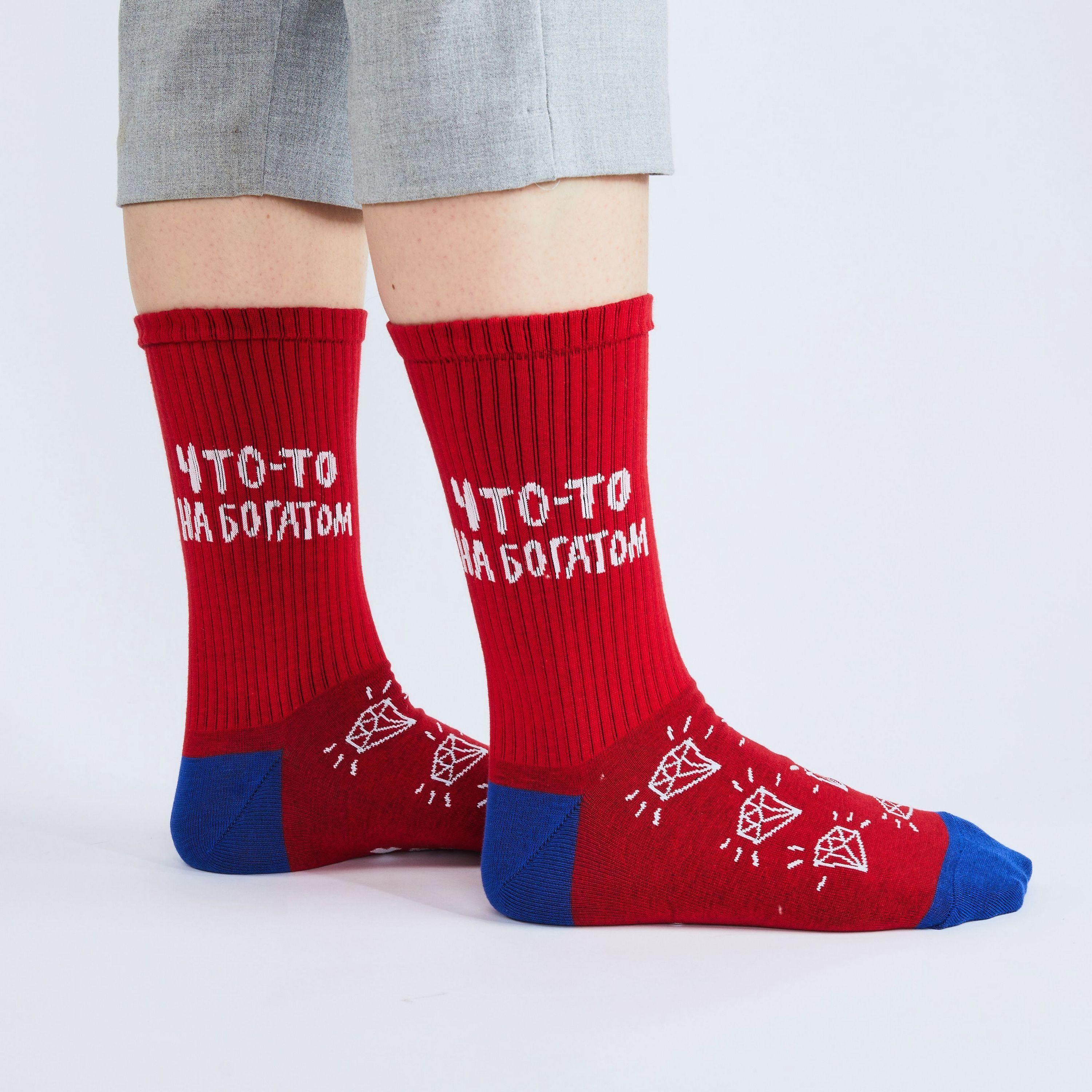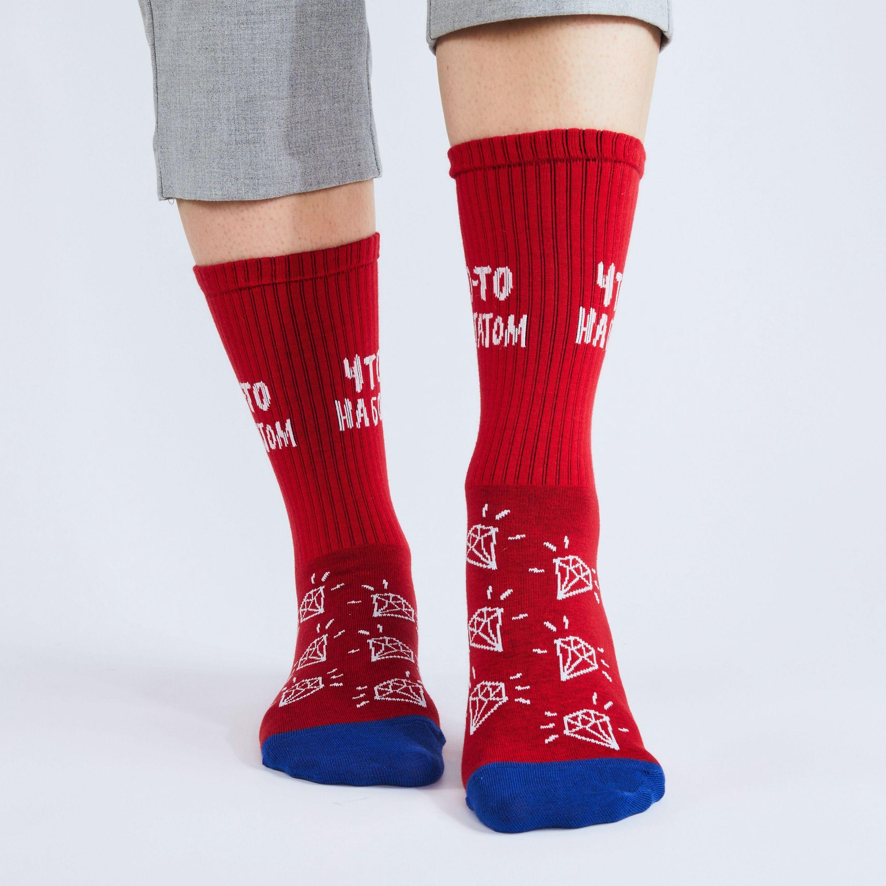Носки унисекс "Что-то на богатом" с принтом в виде драгоценных камней и с соответствующей надписью для тех, кто хочет сделать беззвучное заявление на этом языке.