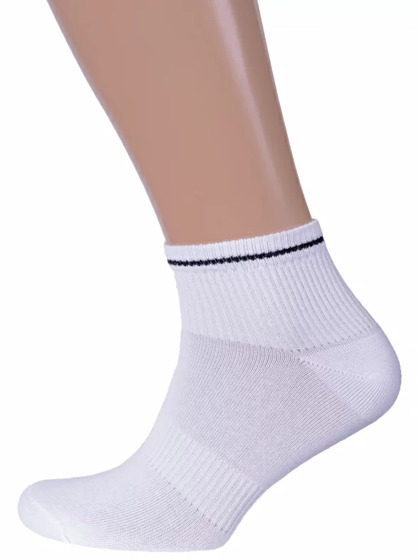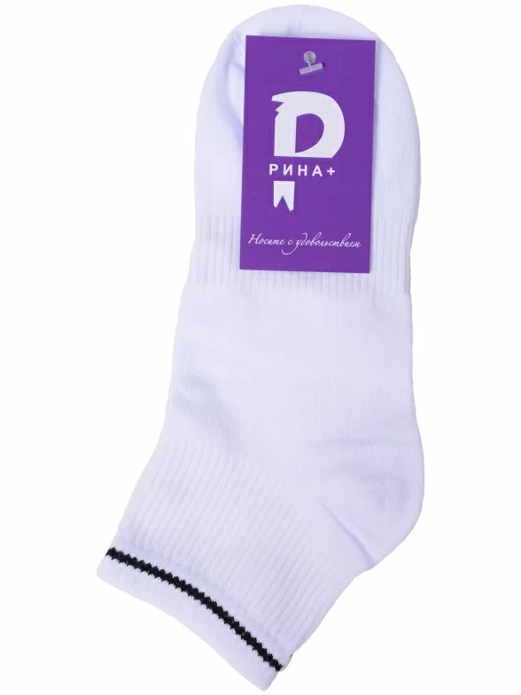 Круглогодичные укороченные носки для мужчин и женщин, цвет белый, спортивные, шов плоский, принт (рисунок): в рубчик, однотонный, состав: 80% хлопок, 18% полиамид, 2% эластан, арт. А 12. Производитель «ООО "Рина+", г. Орск» под брендом «Рина плюс».