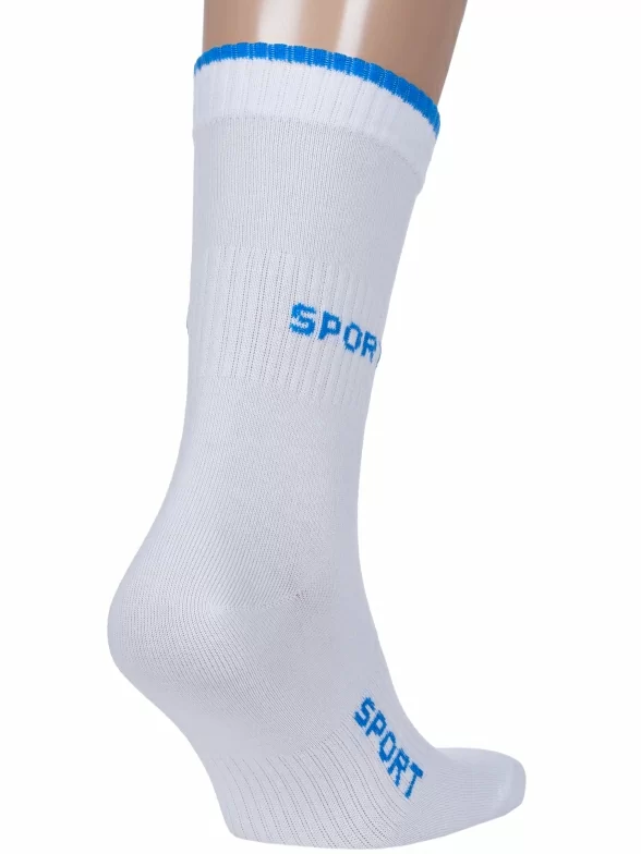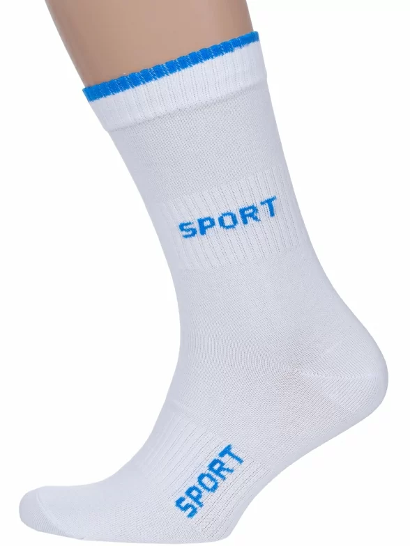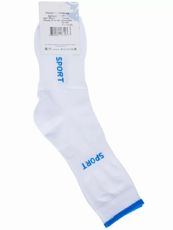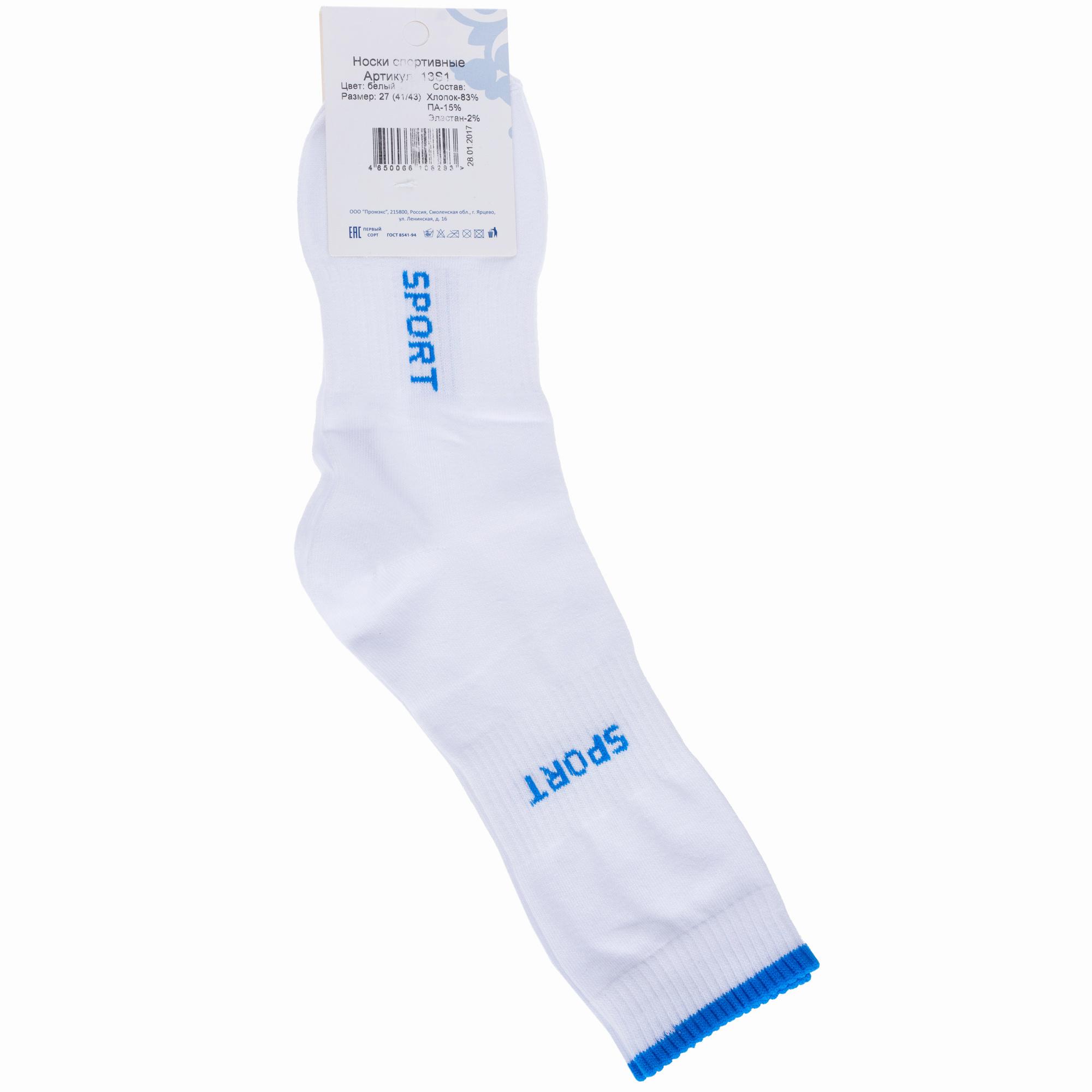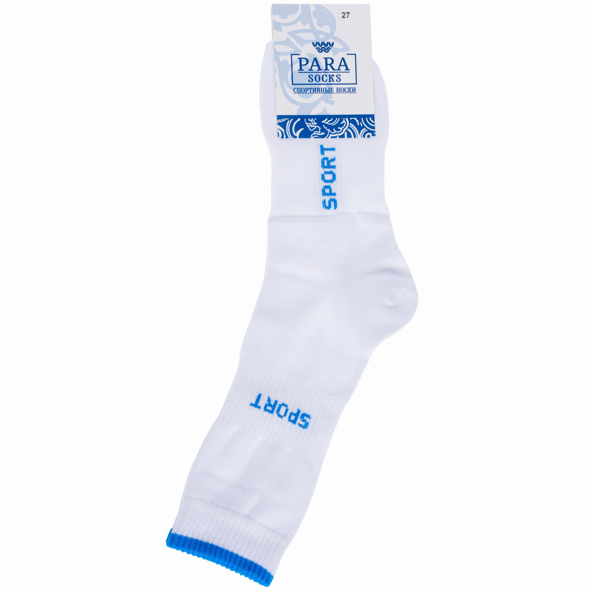 Круглогодичные средней длины носки унисекс, цвет белый, спортивные, шов обычный (не бесшовные), принт (рисунок): спортивные, с узором, состав: 83% хлопок, 15% полиамид, 2% эластан, арт. 13S1. Производитель «ПРОМЭКС ООО, Смоленская область, Россия» под брендом «Para socks».
