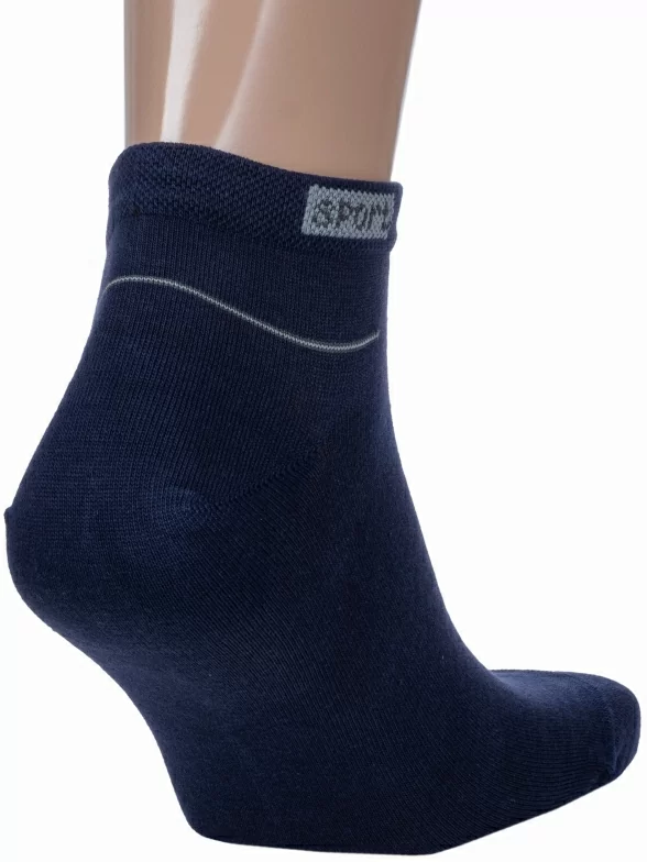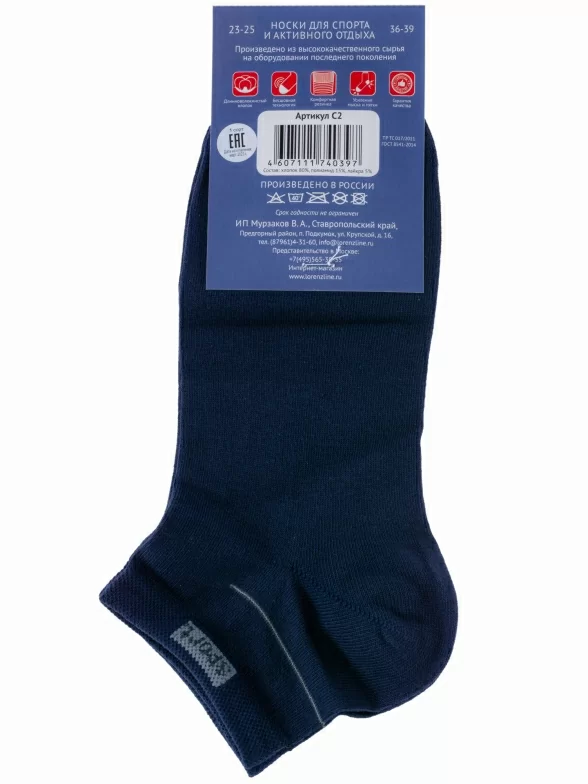 Круглогодичные короткие мужские носки, цвет темно-синий, спортивные, шов кеттельный (бесшовная технология), принт (рисунок): спортивные, с узором, состав: 80% хлопок, 15% полиамид, 5% эластан (лайкра), арт. С2. Производитель «ИП Мурзаков В.А., Ставропольский край, Россия» под брендом «Lorenzline».