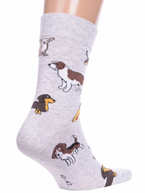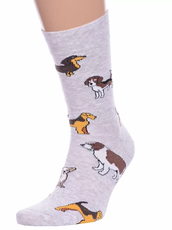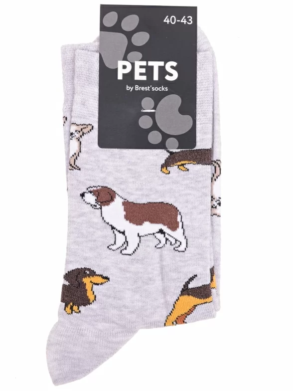 Круглогодичные средней длины носки унисекс, цвет светло-серый, повседневные, возможно бесшовные, принт (рисунок): с узором, животные, состав: 70% хлопок, 28% полиамид, 2% эластан, арт. 21С4200. Производитель «Брестский чулочный комбинат ОАО, Беларусь» под брендом «Брестские (бчк)».