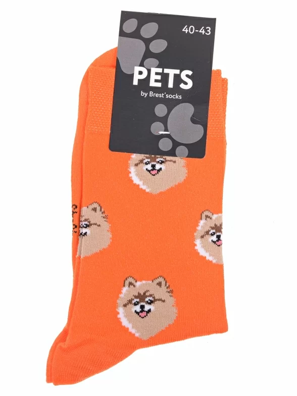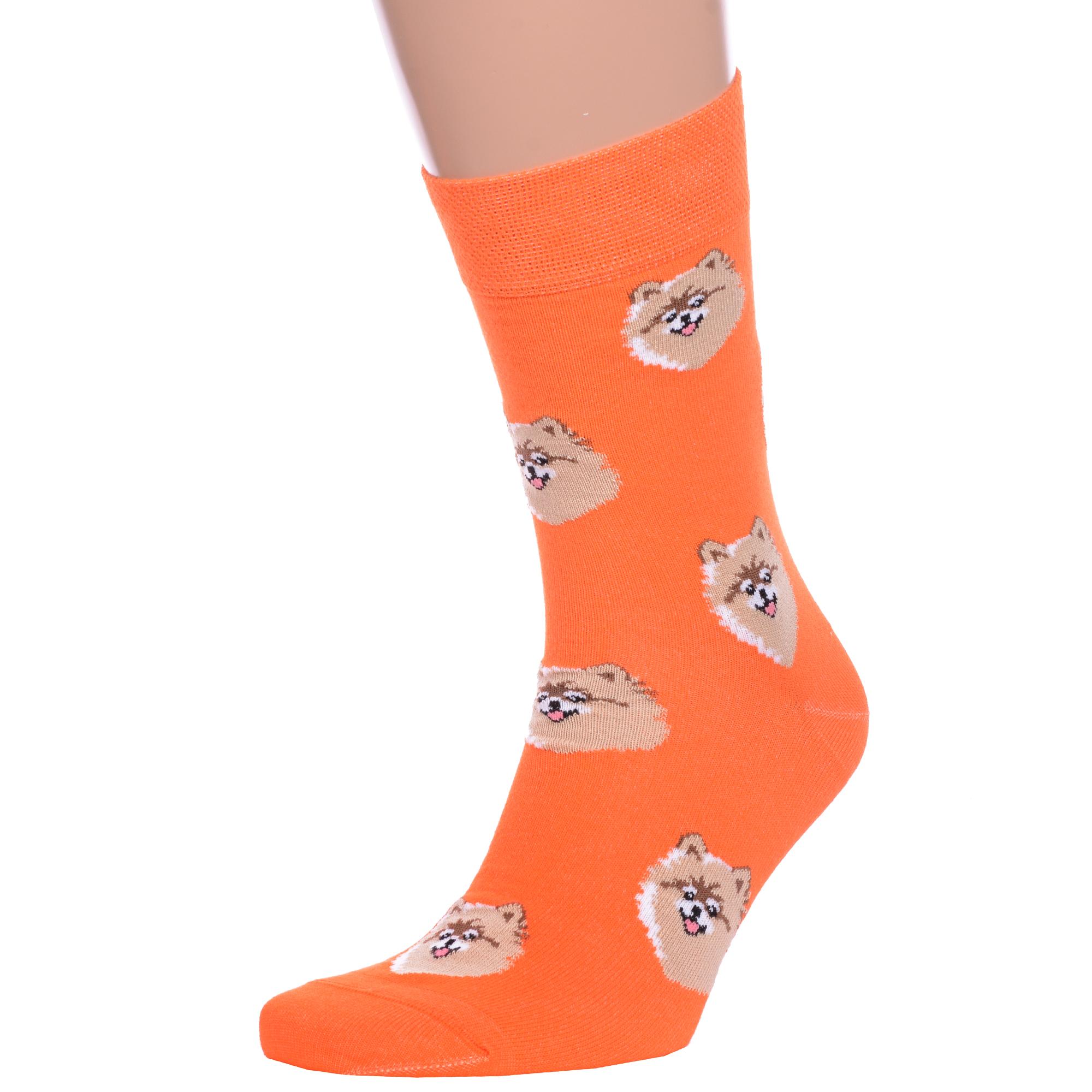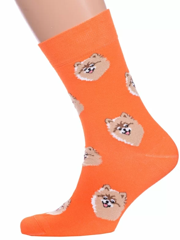 Круглогодичные средней длины носки унисекс, цвет оранжевый, повседневные, возможно бесшовные, принт (рисунок): с узором, животные, состав: 70% хлопок, 28% полиамид, 2% эластан, арт. 21С4200. Производитель «Брестский чулочный комбинат ОАО, Беларусь» под брендом «Брестские (бчк)».