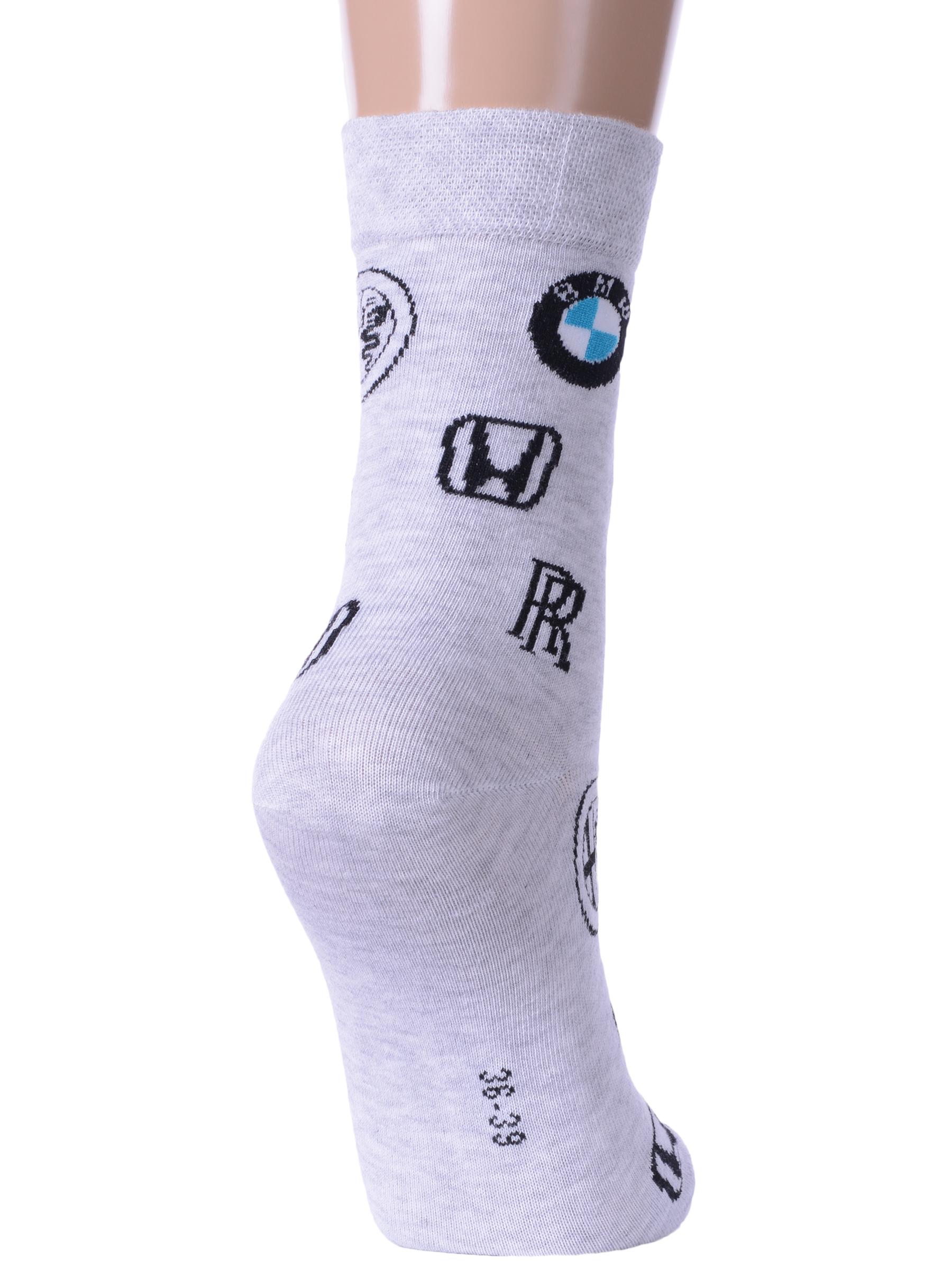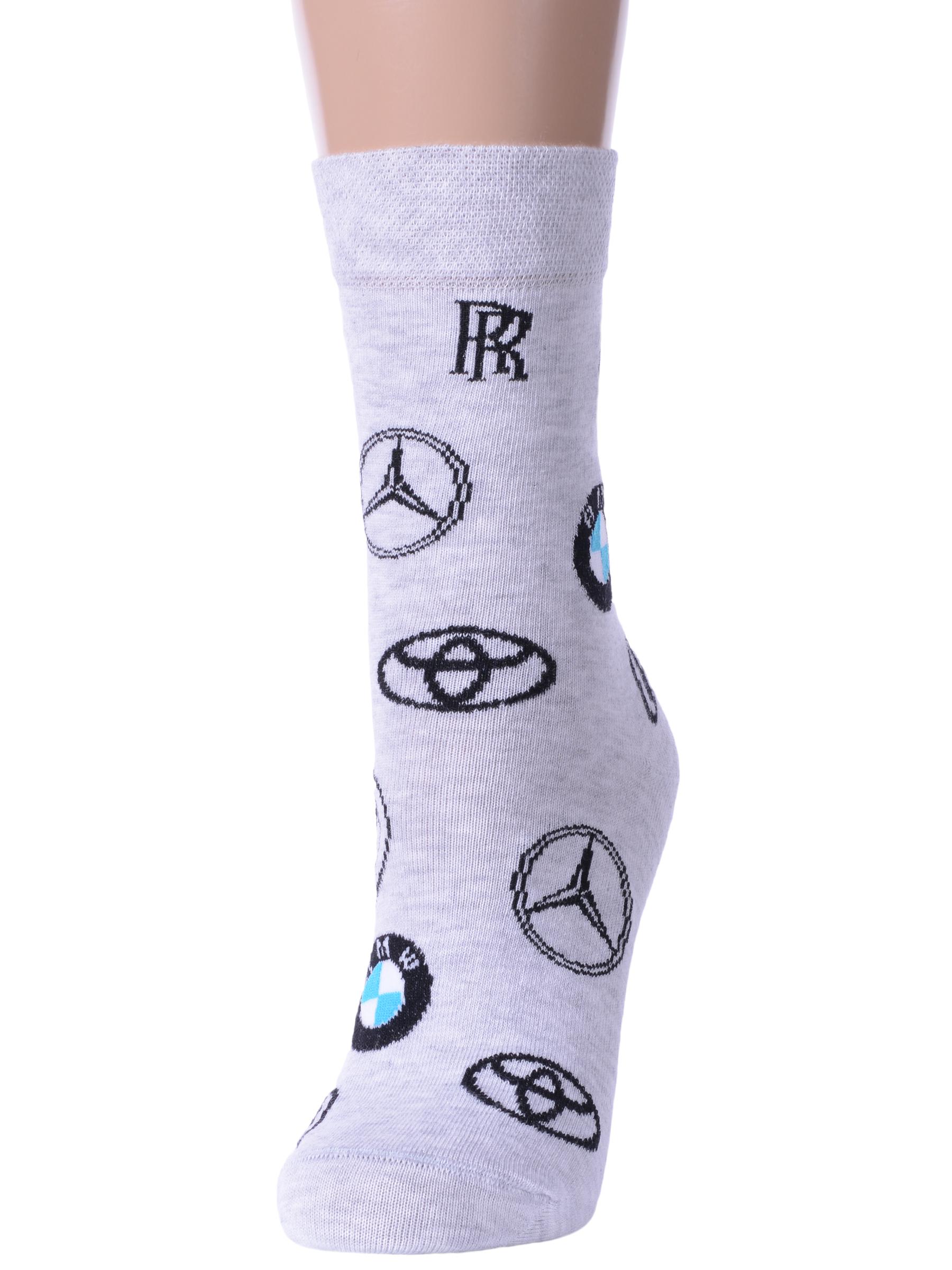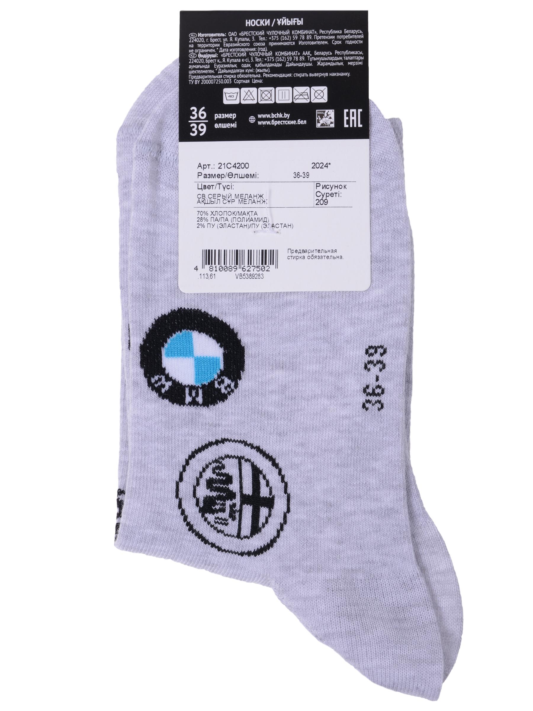 Круглогодичные средней длины носки унисекс, цвет светло-серый, повседневные, шов плоский, принт (рисунок): транспорт, состав: 70% хлопок, 28% полиамид, 2% эластан, арт. 21С4200. Производитель «Брестский чулочный комбинат ОАО, Беларусь» под брендом «Брестские (бчк)».