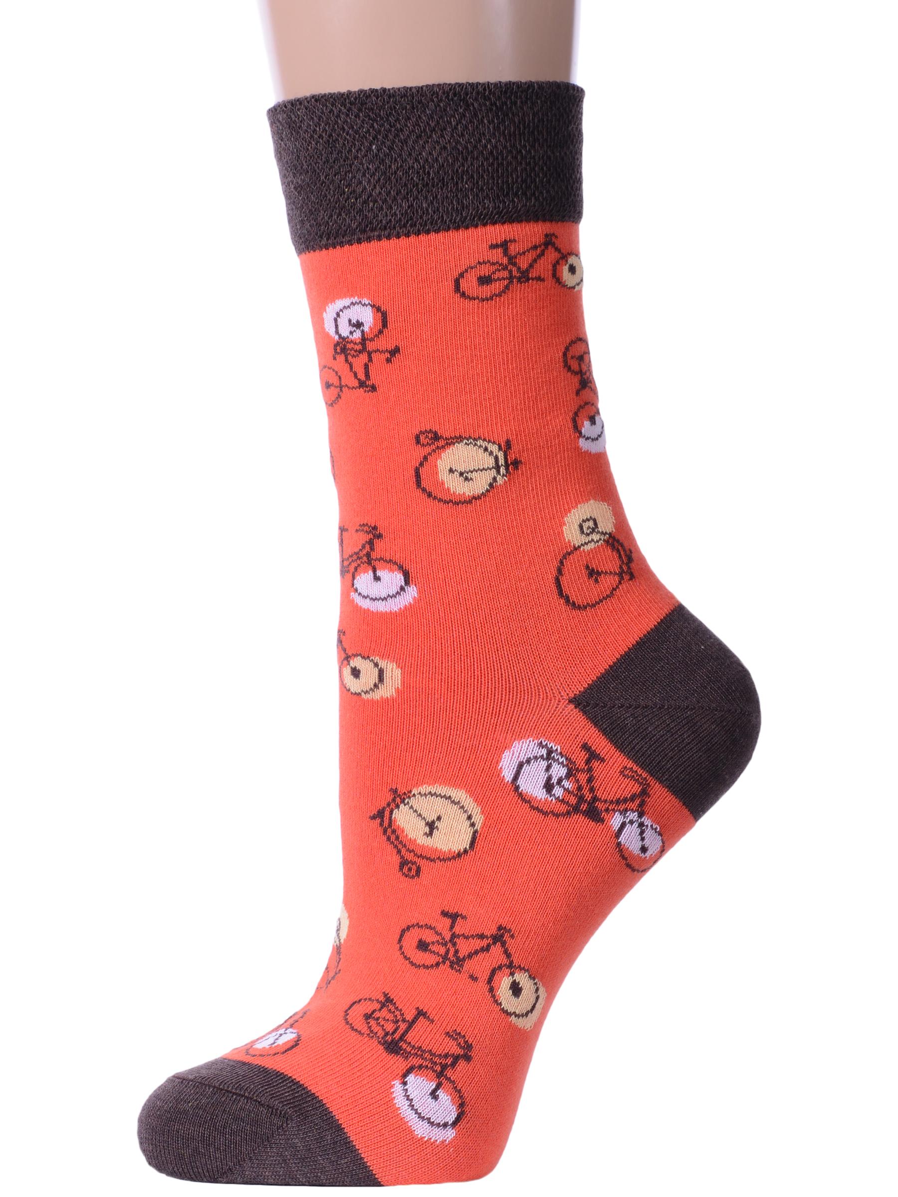 Круглогодичные средней длины носки унисекс, цвет оранжевый, повседневные, шов плоский, принт (рисунок): транспорт, контрастные пятка/мысок/резинка, состав: 70% хлопок, 28% полиамид, 2% эластан, арт. 21С4200. Производитель «Брестский чулочный комбинат ОАО, Беларусь» под брендом «Брестские (бчк)».