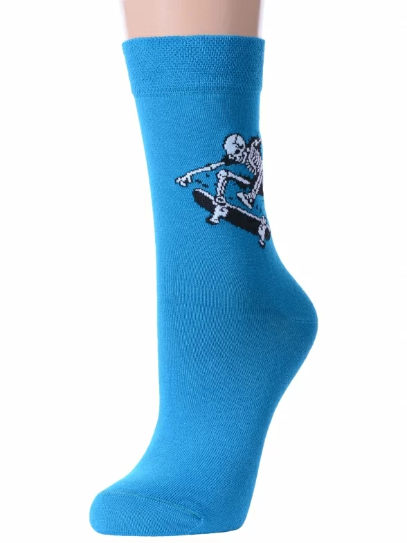 Круглогодичные средней длины носки унисекс, цвет синий, повседневные, шов плоский, принт (рисунок): транспорт, состав: 70% хлопок, 28% полиамид, 2% эластан, арт. 21С4200. Производитель «Брестский чулочный комбинат ОАО, Беларусь» под брендом «Брестские (бчк)».