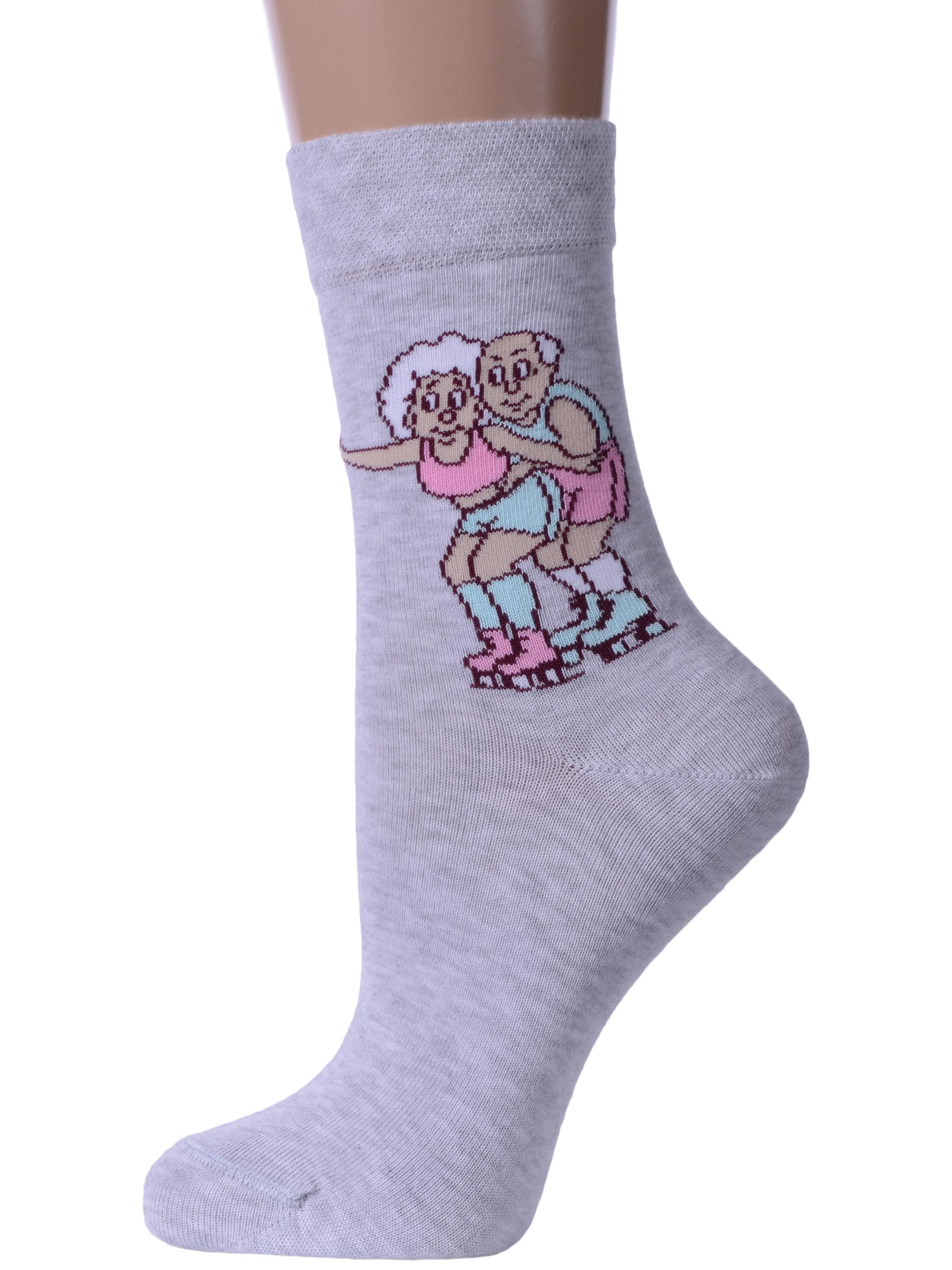 Круглогодичные средней длины носки унисекс, цвет светло-серый, повседневные, шов плоский, принт (рисунок): люди, состав: 70% хлопок, 28% полиамид, 2% эластан, арт. 21С4200. Производитель «Брестский чулочный комбинат ОАО, Беларусь» под брендом «Брестские (бчк)».