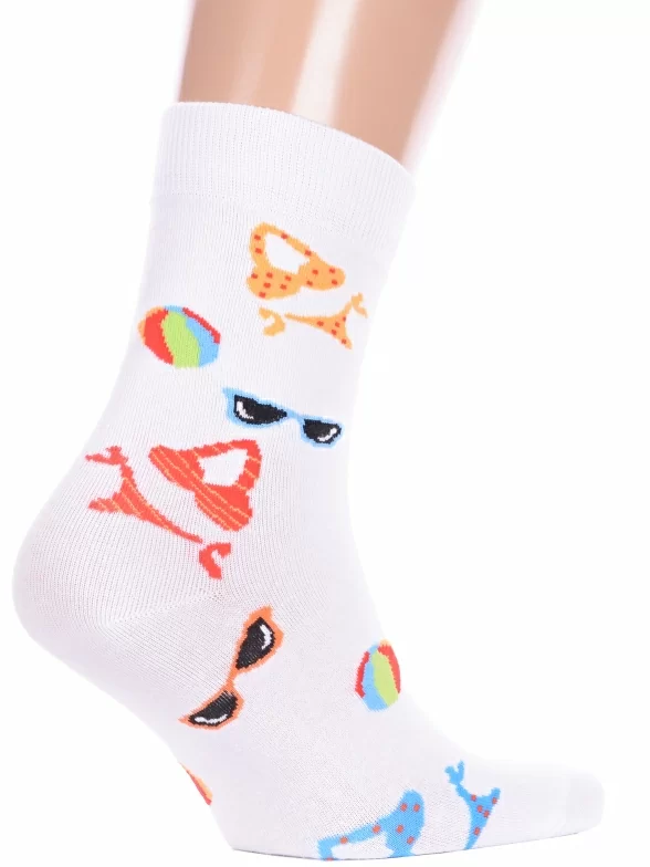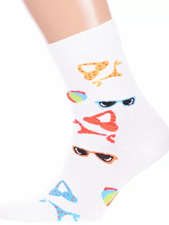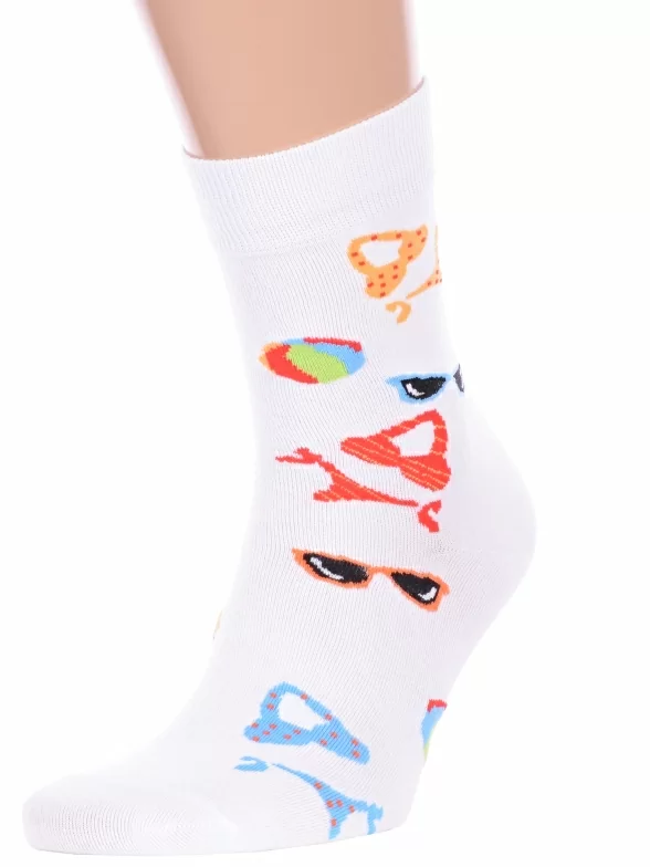 Круглогодичные средней длины носки унисекс, цвет белый, повседневные, возможно бесшовные, принт (рисунок): с узором, состав: 75% хлопок, 23% полиамид, 2% эластан, арт. Нус80138-2-10. Производитель «Китай, страна бренда - Россия» под брендом «Hobby line».