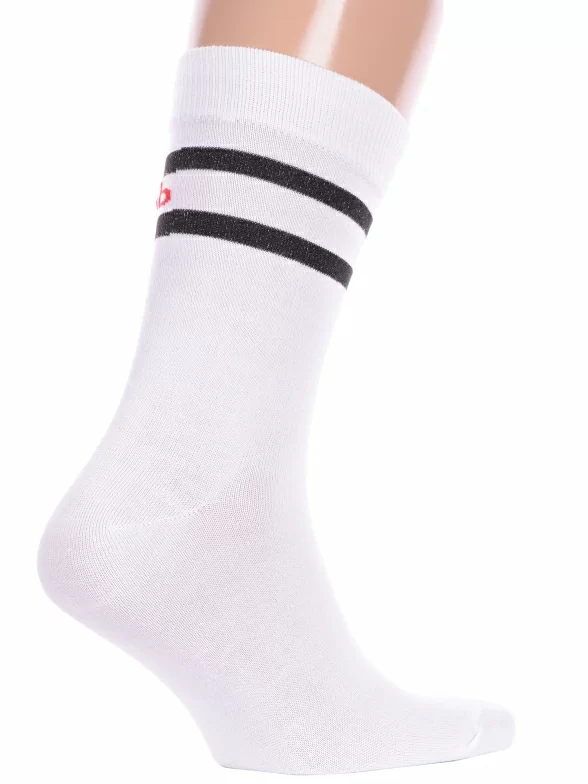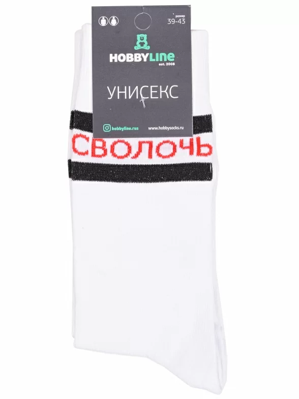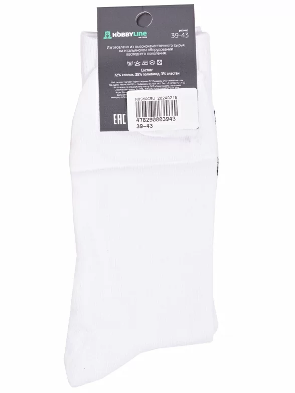 Круглогодичные средней длины носки унисекс, цвет белый, повседневные, возможно бесшовные, принт (рисунок): с узором, надписи, состав: 72% хлопок, 25% полиамид, 3% эластан, арт. Нус80159-26. Производитель «Китай, страна бренда - Россия» под брендом «Hobby line».
