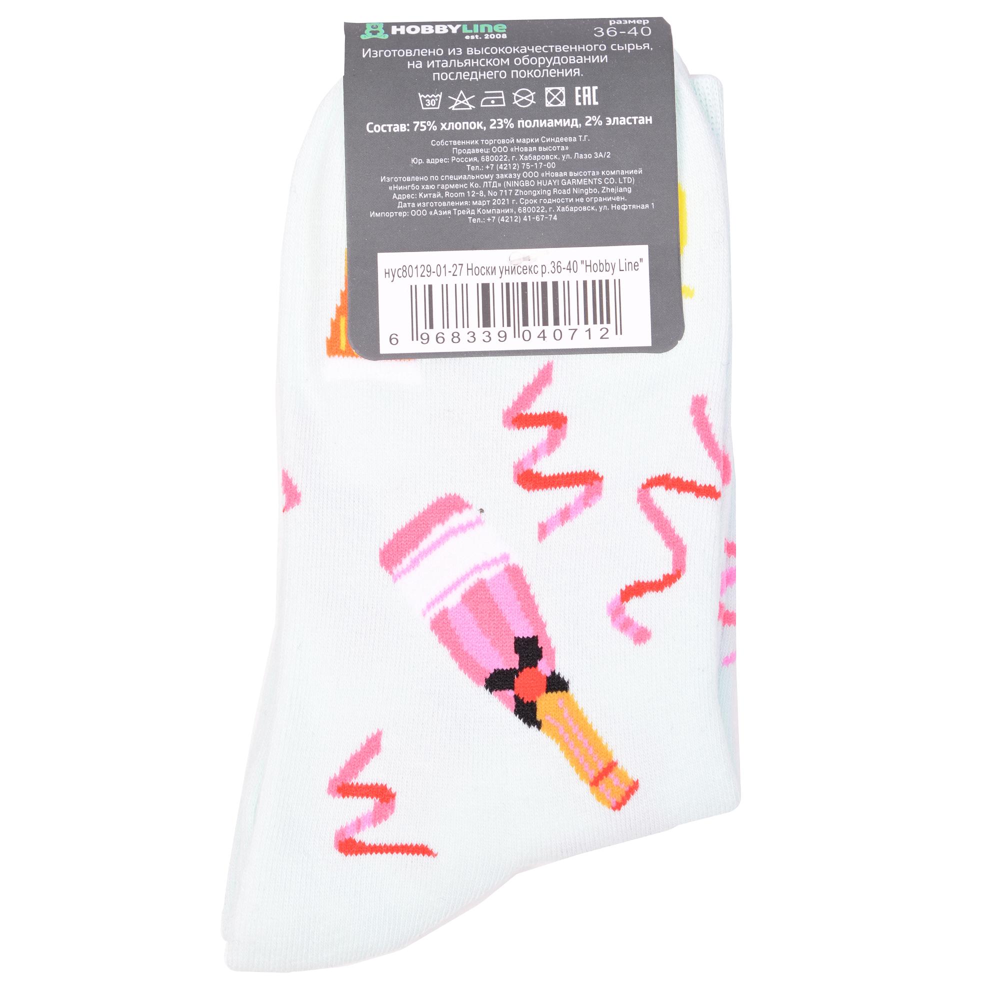 Круглогодичные средней длины носки унисекс, цвет бирюзовый, повседневные, возможно бесшовные, принт (рисунок): с узором, сердечки / поцелуи / любовь, состав: 75% хлопок, 23% полиамид, 2% эластан, арт. Нус80129-01-27. Производитель «Китай, страна бренда - Россия» под брендом «Hobby line».