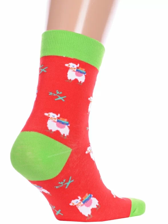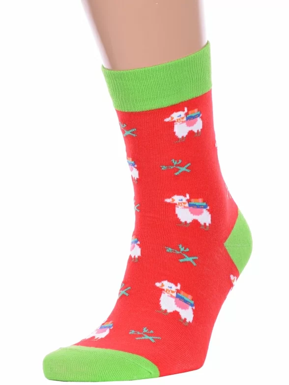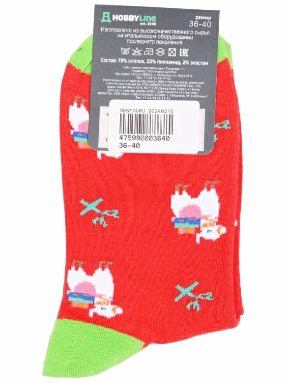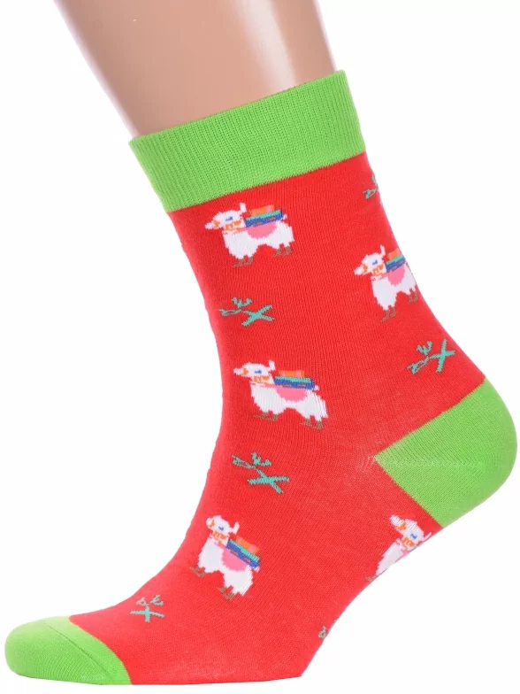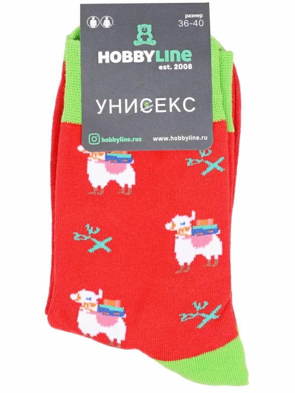Круглогодичные средней длины носки унисекс, цвет красный, повседневные, возможно бесшовные, принт (рисунок): с узором, контрастные пятка / мысок / резинка, животные, состав: 75% хлопок, 23% полиамид, 2% эластан, арт. Нус80135-5-18. Производитель «Китай, страна бренда - Россия» под брендом «Hobby line».
