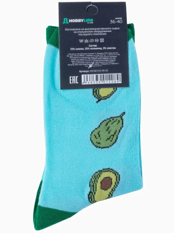 Носки unisex Hobby Line, 80153, рис. 09-02, ГОЛУБЫЕ "Авокадо"