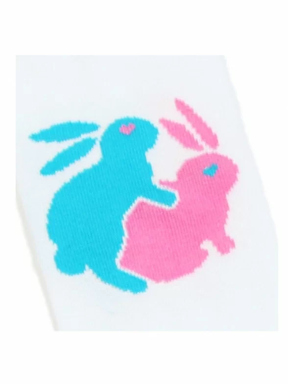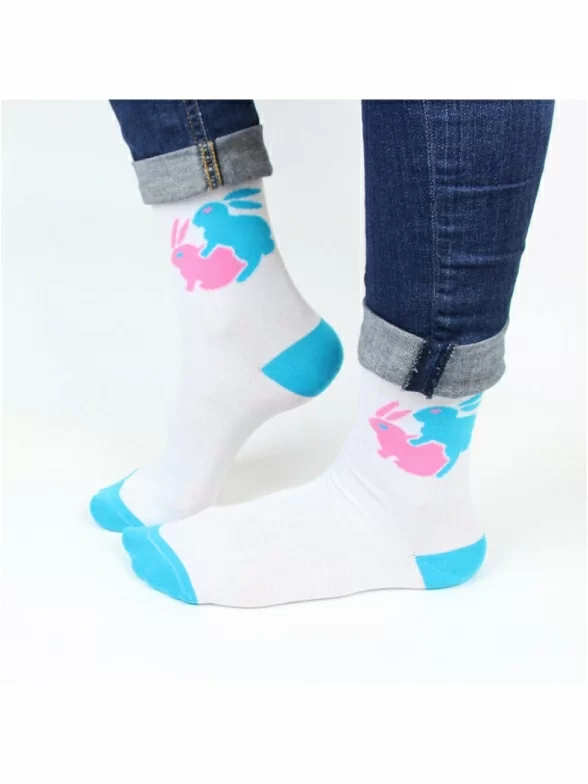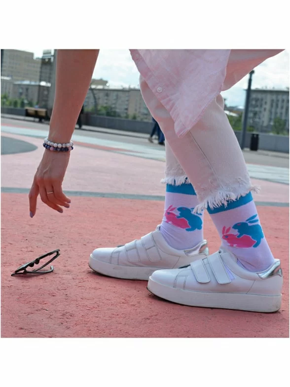Занимайтесь любовью, а не войной. Берите пример с этих милых кроликов, которые нарисованы на этих носках от kingkit, они то точно поняли смысл жизни и во всю подтверждают это. Носки просто незаменимы для свиданий и для тех, кто привык эпатировать скучное общество.
