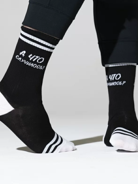 Носки унисекс "А что случилось?" с интересным неповторимым дизайном, украшены ярким цветным принтом на тематику 90-х.