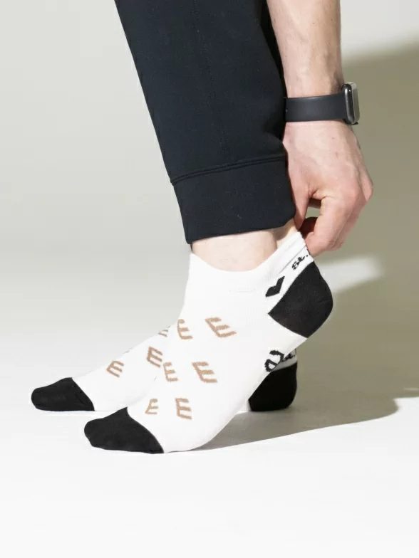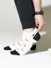 Короткая модель с двойным бортом (манжетом резинки) и с обычным швом на мыске - с ощутимым уплотнением. Пара таких носков с индивидуальной фабричной этикеткой поставляется в плотном транспортном пакете.