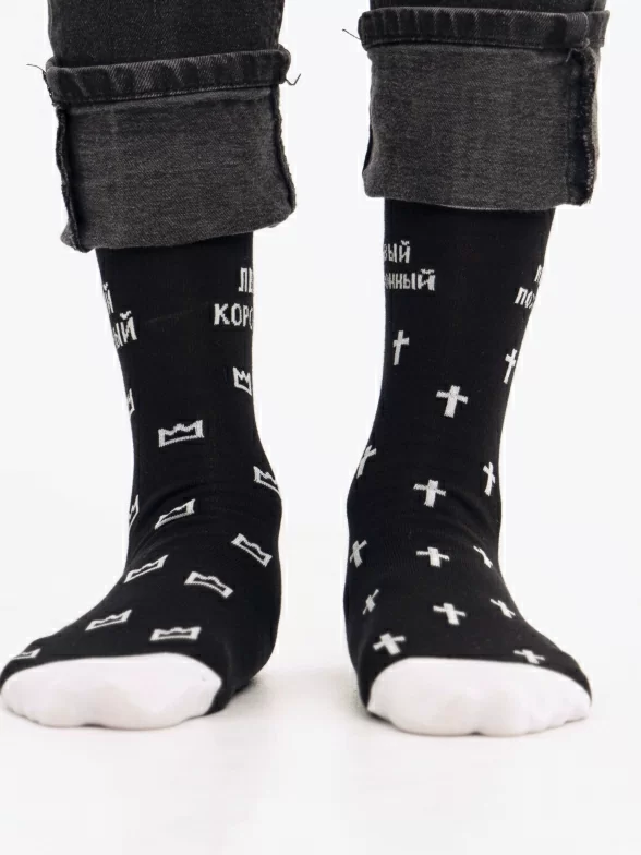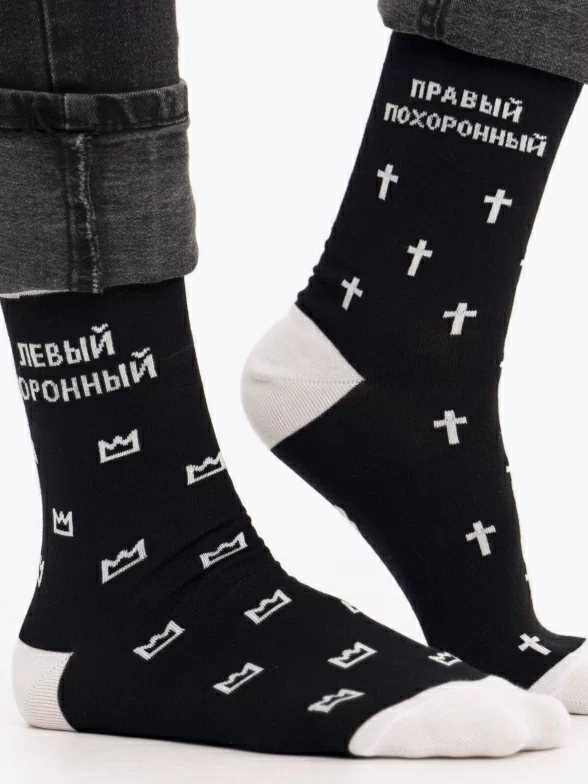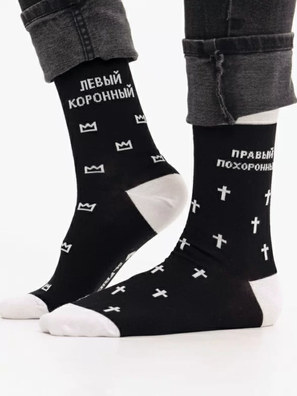 Носки унисекс "Левый коронный, правый похоронный" с интересным неповторимым дизайном.