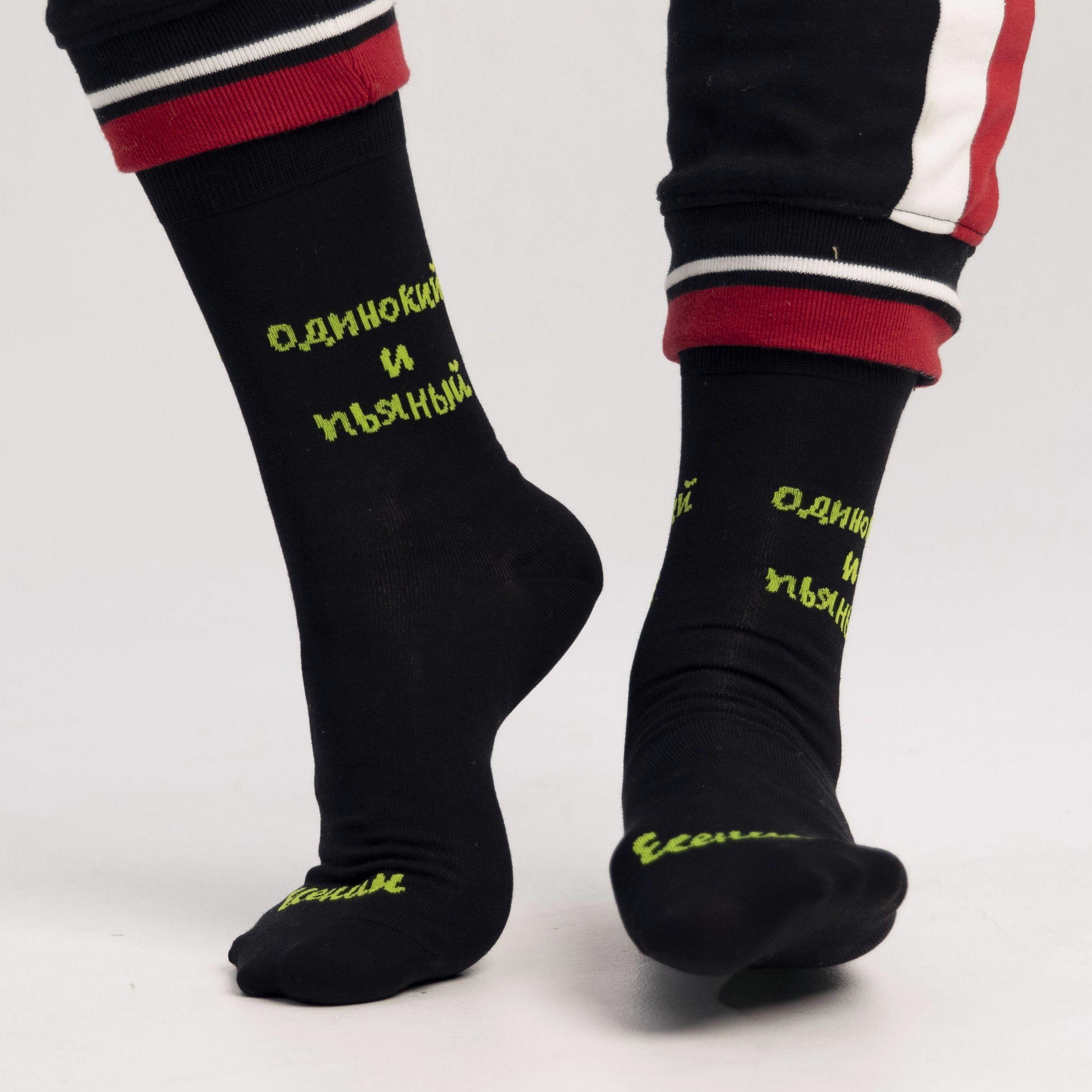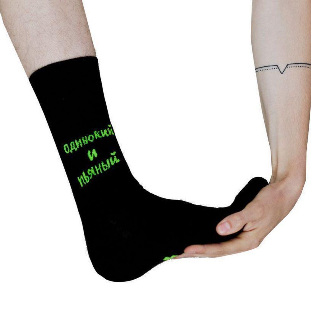 Носки унисекс "Одинокий и пьяный" с интересным неповторимым дизайном.