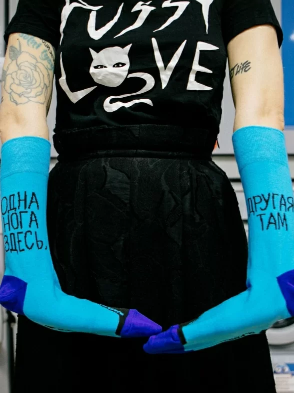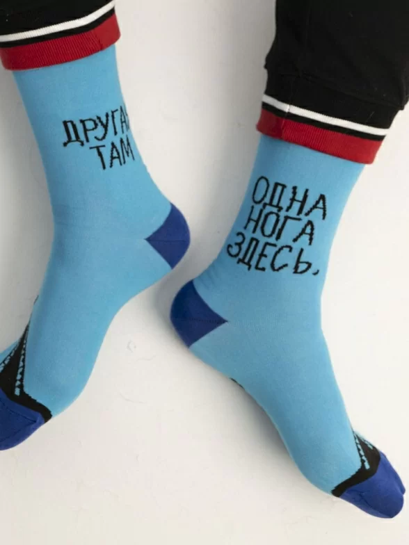 Носки унисекс "Одна нога здесь, другая там" с интересным неповторимым дизайном.