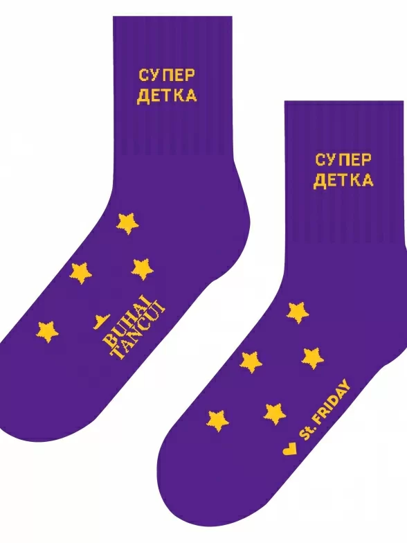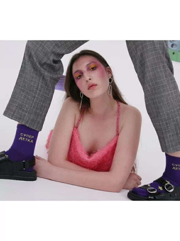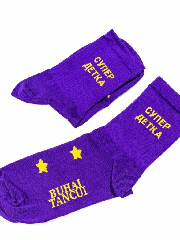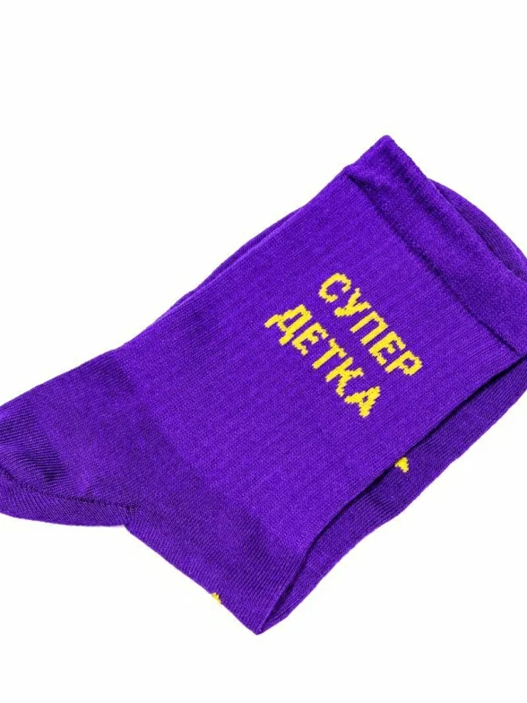 Носки унисекс "Супер детка" с интересным неповторимым дизайном. Принт и эффектные цветовые сочетания делают их отличным завершающим штрихом для яркого образа к вечеринке.