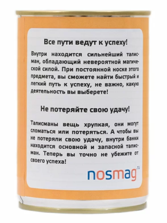 Оригинальный подарок - носки в металлической банке с надписью. Они интересны не только формой, но и содержанием. Мало того, что внутри находится не просто пара, а три носка, один из которых - запасной, на два "основных" нанесены надписи, которые превращают обычные носки в талисман, притягивающий успех и удачу.
