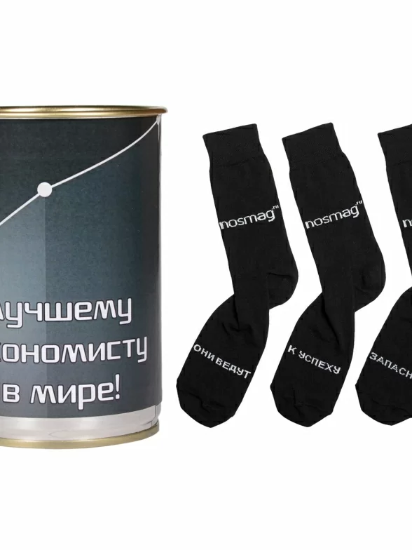 Мужские носки "Трио " в банке, 1БАН_ПрофН, "Лучшему экономисту в мире" / черные