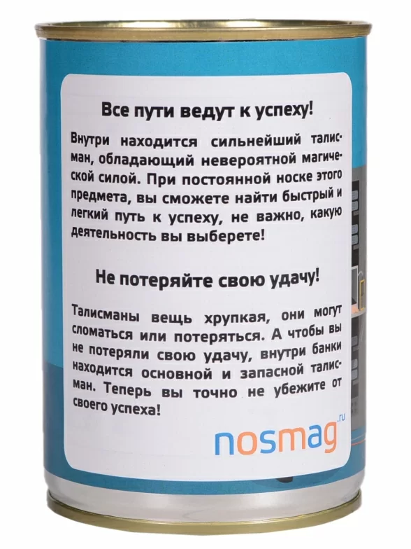 Оригинальный подарок - носки в металлической банке с надписью. Они интересны не только формой, но и содержанием. Мало того, что внутри находится не просто пара, а три носка, один из которых - запасной, на два "основных" нанесены надписи, которые превращают обычные носки в талисман, притягивающий успех и удачу.