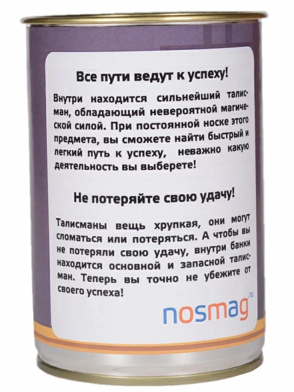 Оригинальный подарок - носки в металлической банке с надписью. Они интересны не только формой, но и содержанием. Мало того, что внутри находится не просто пара, а три носка, один из которых - запасной, на два "основных" нанесены надписи, которые превращают обычные носки в талисман, притягивающий успех и удачу.