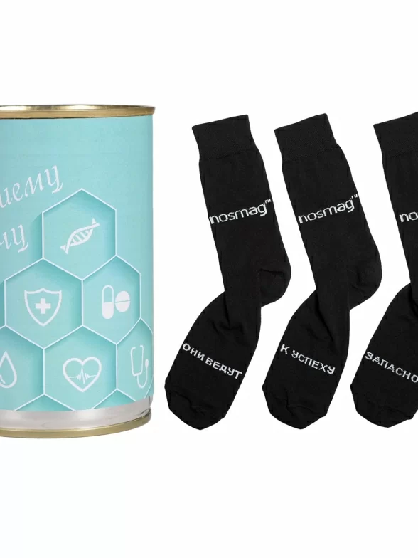 Оригинальный подарок - носки в металлической банке с надписью. Они интересны не только формой, но и содержанием. Мало того, что внутри находится не просто пара, а три носка, один из которых - запасной, на два "основных" нанесены надписи, которые превращают обычные носки в талисман, притягивающий успех и удачу.