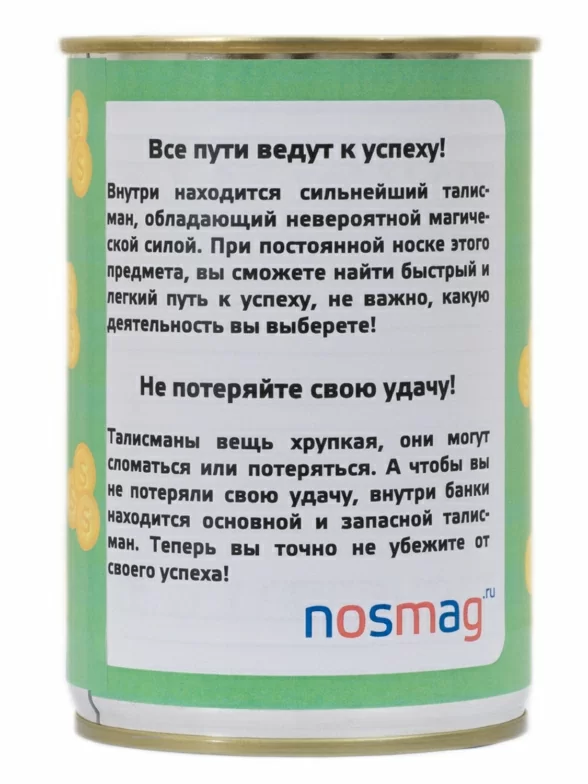 Оригинальный подарок - носки в металлической банке с надписью. Они интересны не только формой, но и содержанием. Мало того, что внутри находится не просто пара, а три носка, один из которых - запасной, на два "основных" нанесены надписи, которые превращают обычные носки в талисман, притягивающий успех и удачу.