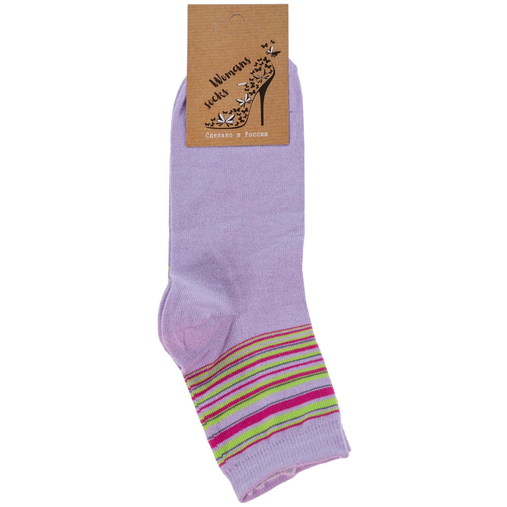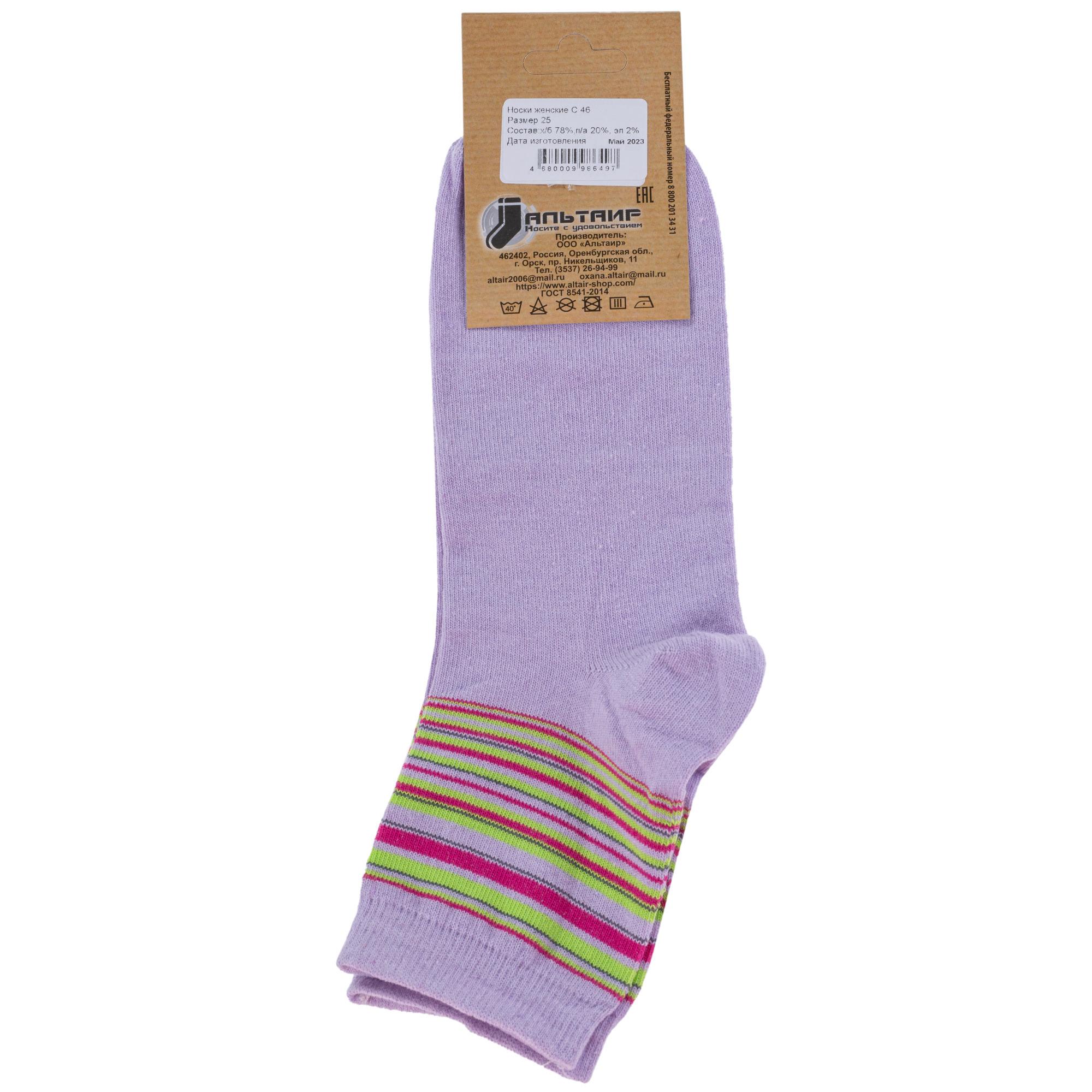 Круглогодичные укороченные женские носки, цвет сиреневый, классические, шов обычный (не бесшовные), принт (рисунок): полоски, с узором, состав: 78% хлопок, 20% полиамид, 2% эластан, арт. С46. Производитель «ООО Альтаир, г. Орск, Оренбургская обл, Россия» под брендом «Альтаир».