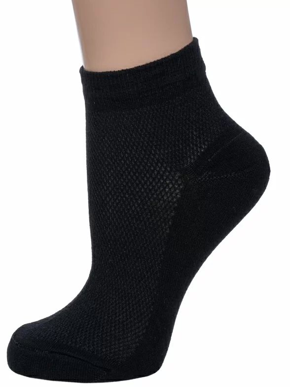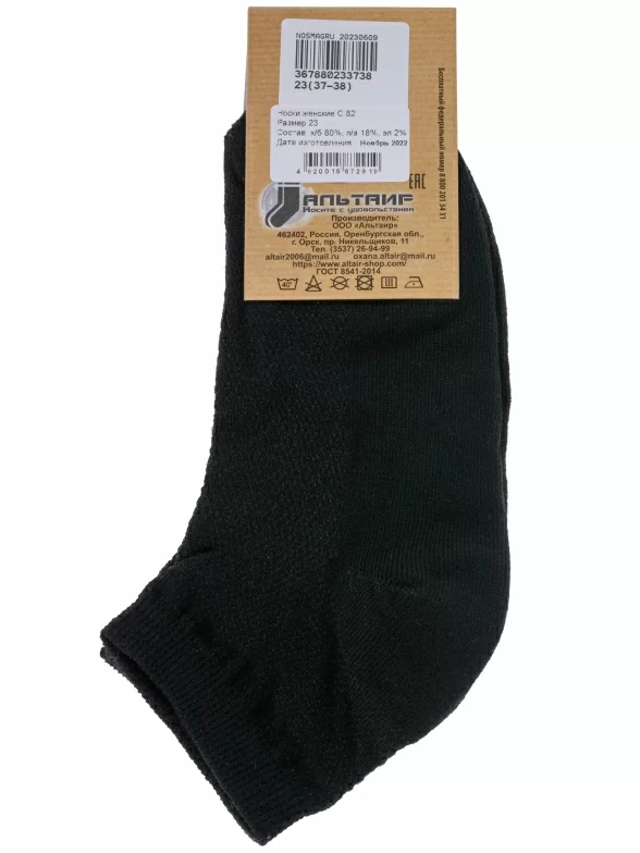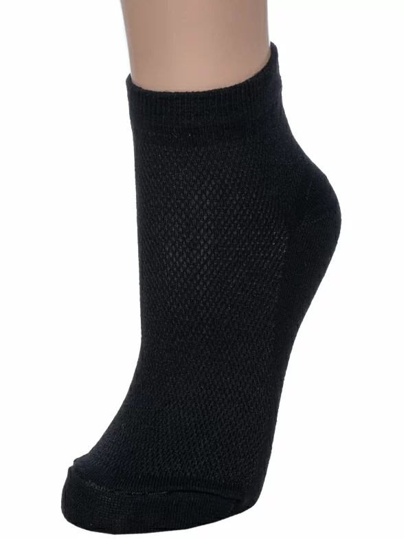Летние короткие женские носки, цвет черный, в сеточку, шов обычный (не бесшовные), принт (рисунок): однотонный, состав: 80% хлопок, 18% полиамид, 2% эластан, арт. С82. Производитель «ООО Альтаир, г. Орск, Оренбургская обл, Россия» под брендом «Альтаир».
