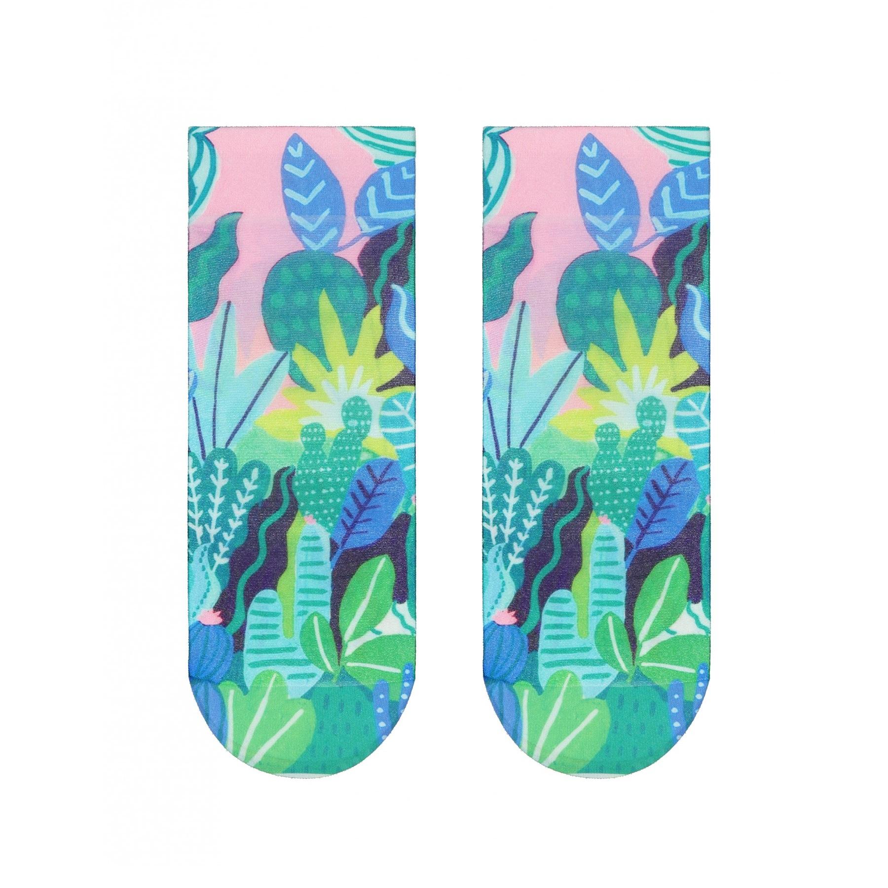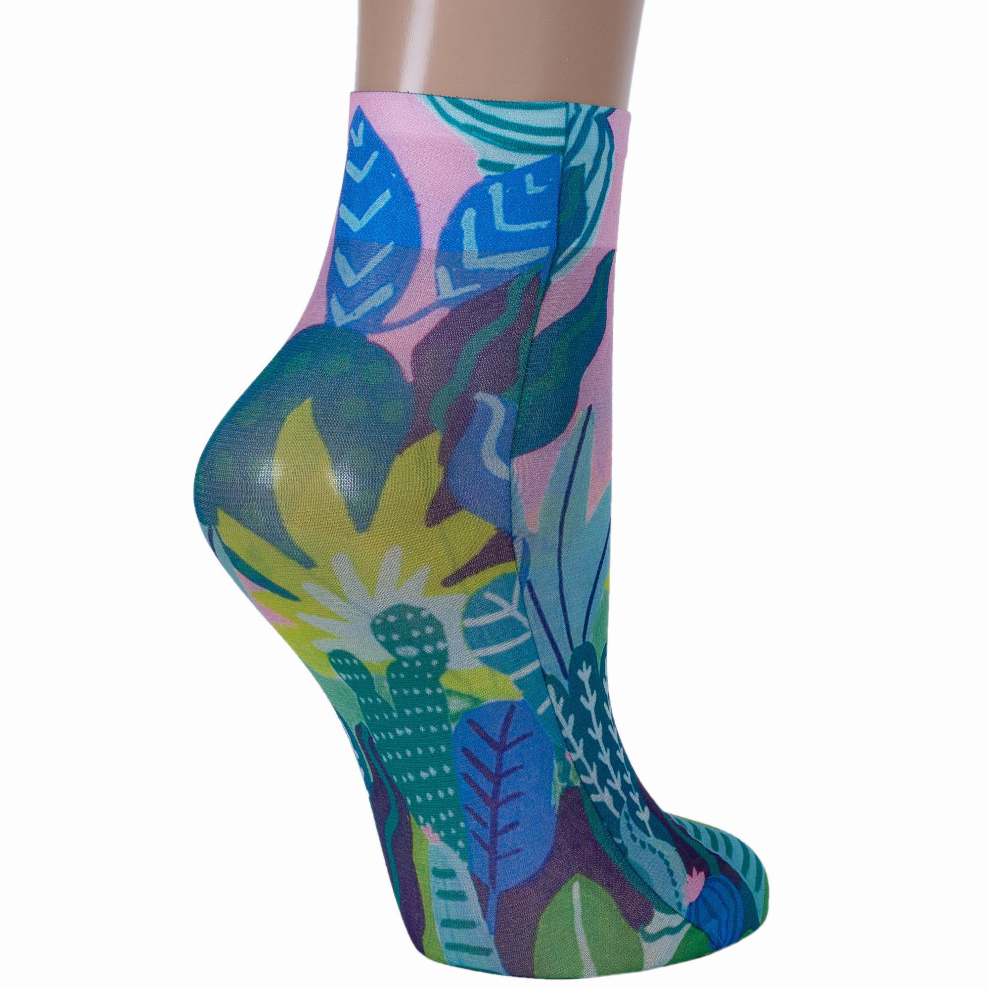 Капроновые носки плотностью 40 den с растительным принтом, нанесенным термопечатью.