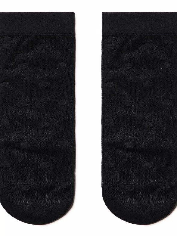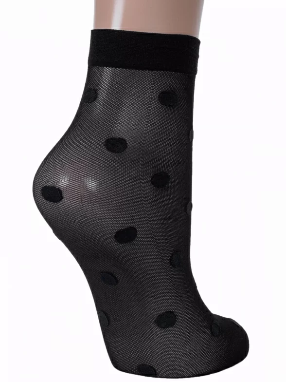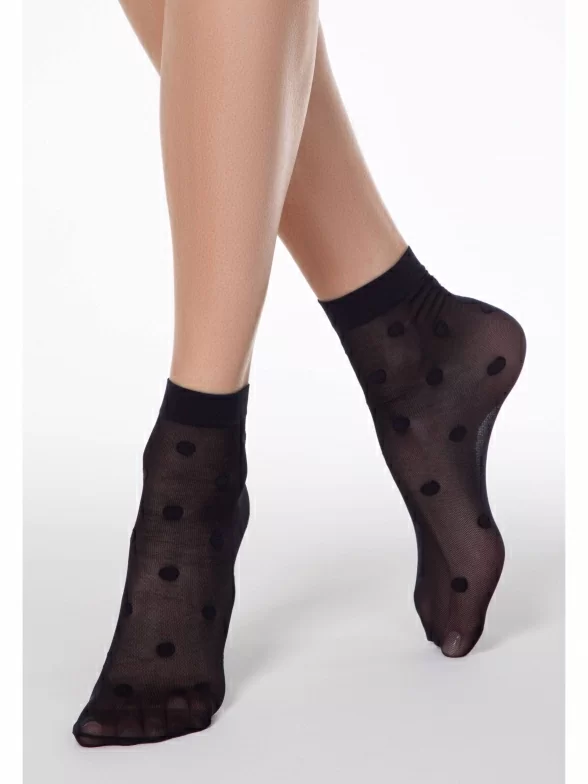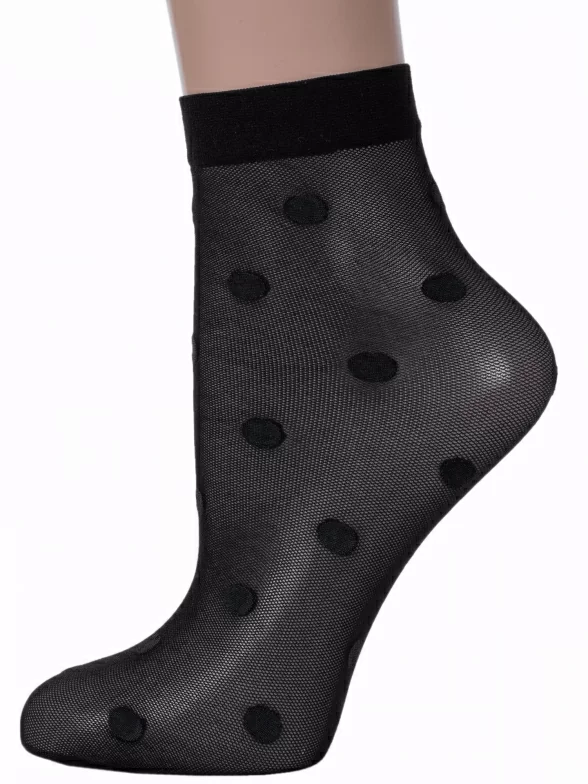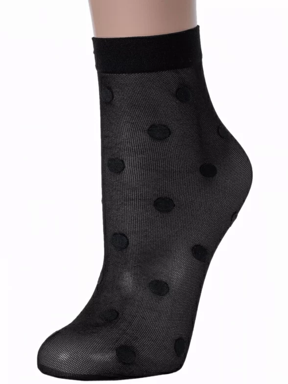 Женские носки украшены принтом в крупный горох. Модель от белорусского производителя Conte сделана из полиамида и эластана.