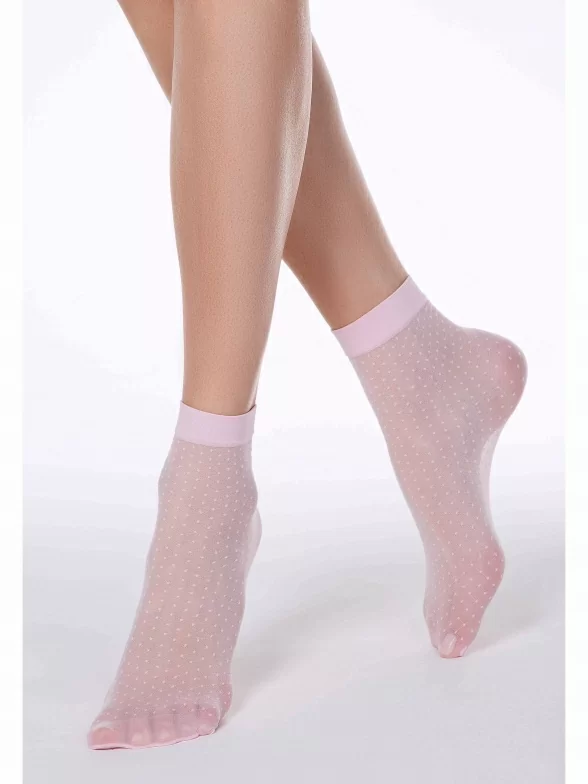 Женские носки украшены принтом в горох. Модель от белорусского производителя Conte сделана из полиамида и эластана.