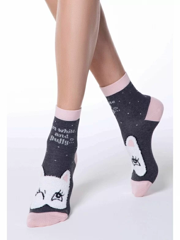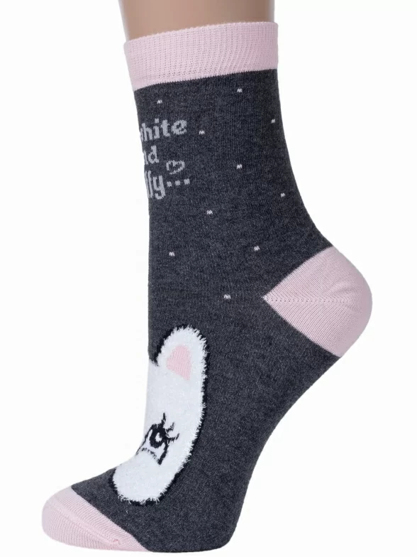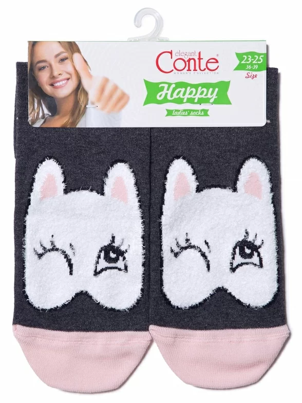 Женские носки, украшенные принтом, сделаны из пряжи на основе хлопка. Модель от Conte фиксируется широкой резинкой, которая не передавливает ногу.