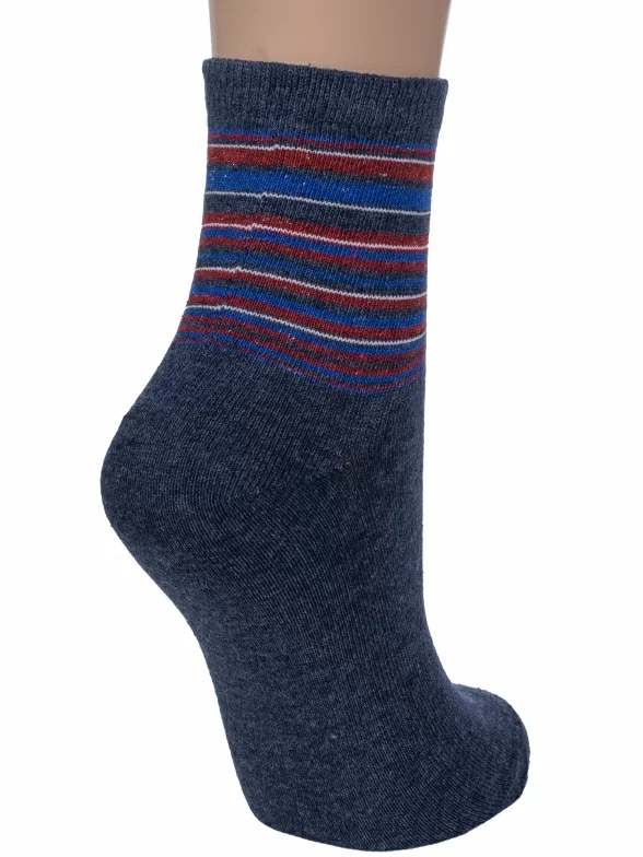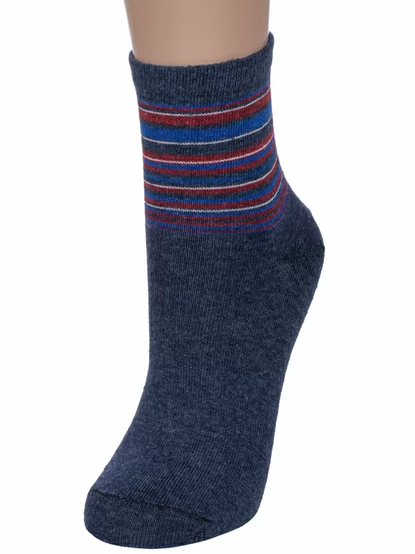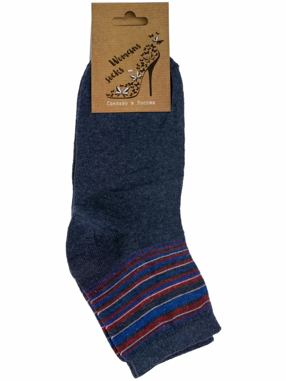 Круглогодичные укороченные женские носки, цвет темно-синий, классические, шов обычный (не бесшовные), принт (рисунок): полоски, с узором, состав: 78% хлопок, 20% полиамид, 2% эластан, арт. С46. Производитель «ООО Альтаир, г. Орск, Оренбургская обл, Россия» под брендом «Альтаир».