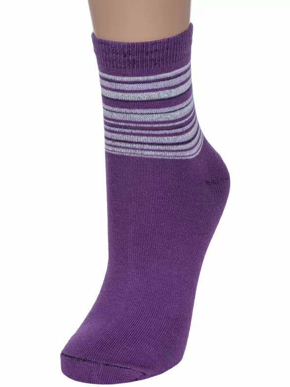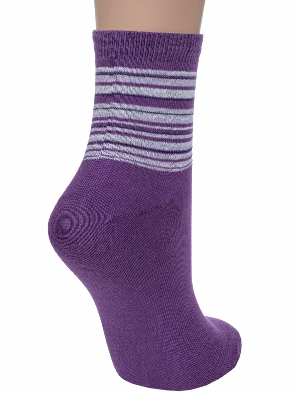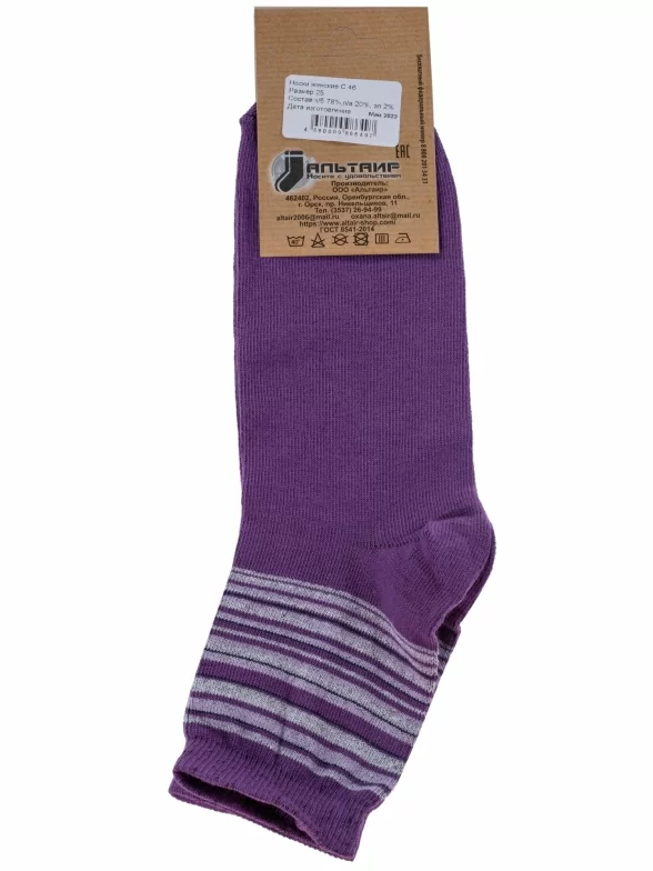 Круглогодичные укороченные женские носки, цвет фиолетовый, классические, шов обычный (не бесшовные), принт (рисунок): полоски, с узором, состав: 78% хлопок, 20% полиамид, 2% эластан, арт. С46. Производитель «ООО Альтаир, г. Орск, Оренбургская обл, Россия» под брендом «Альтаир».