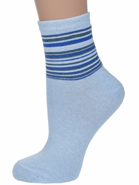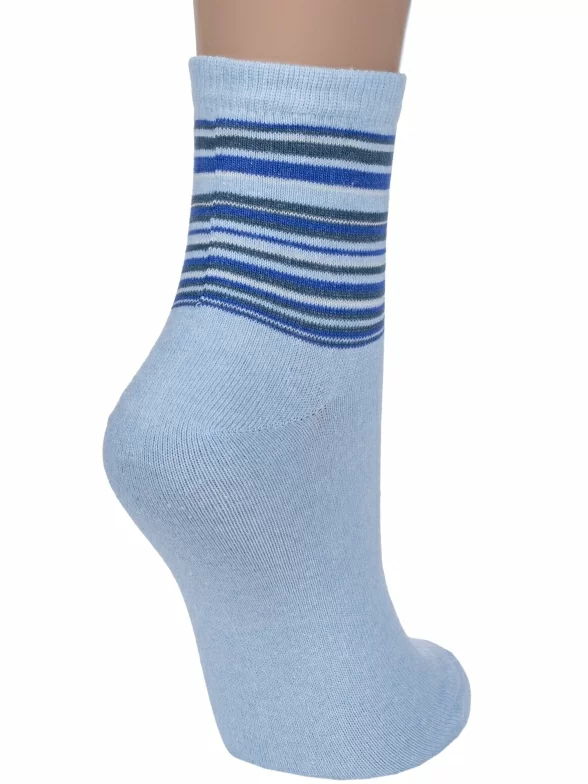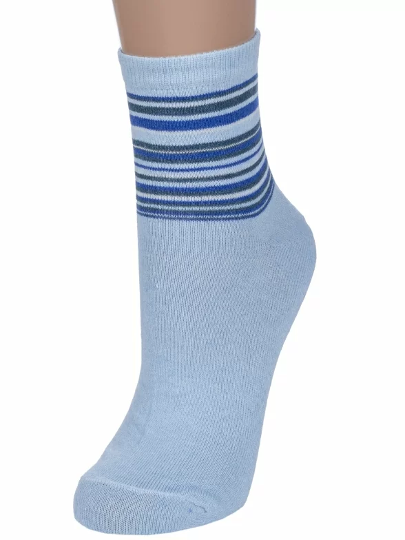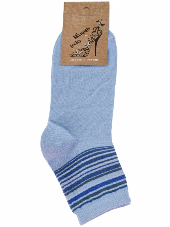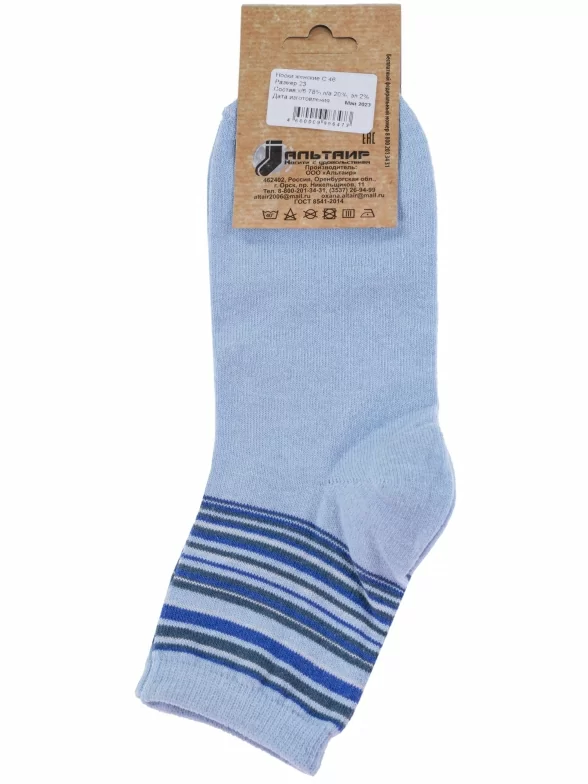 Круглогодичные укороченные женские носки, цвет голубой, классические, шов обычный (не бесшовные), принт (рисунок): полоски, с узором, состав: 78% хлопок, 20% полиамид, 2% эластан, арт. С46. Производитель «ООО Альтаир, г. Орск, Оренбургская обл, Россия» под брендом «Альтаир».