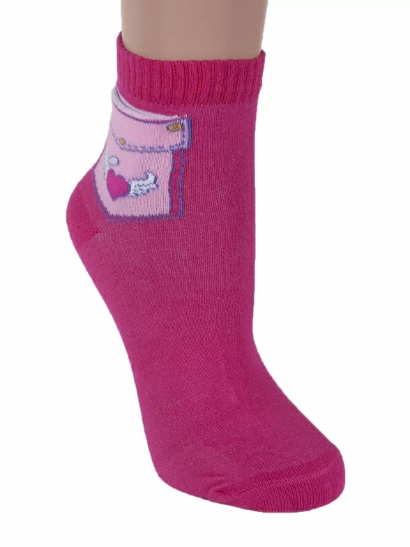 Качественные женские носки укороченного фасона. Они сделаны из плотного трикотажа с высоким содержанием хлопка и оформлены ярким контрастным принтом в виде кармашка с сердечком.