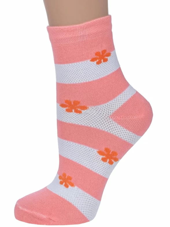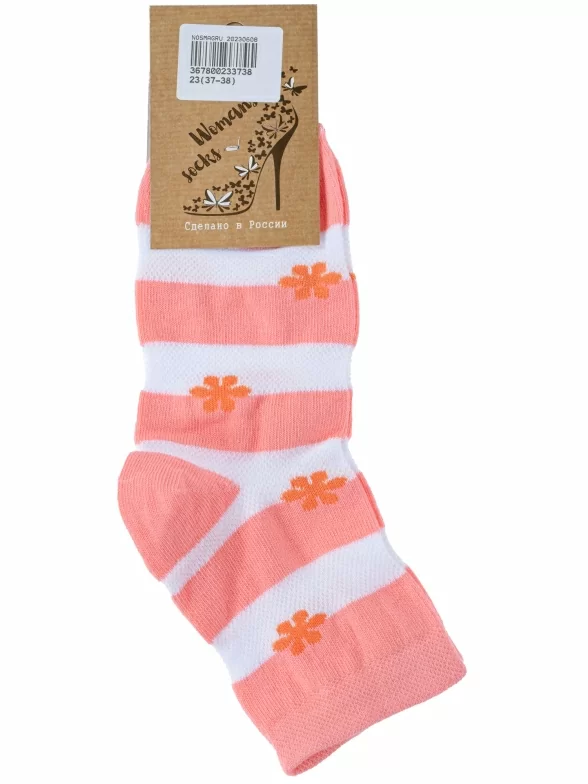 Круглогодичные или летние укороченные женские носки, цвет розовый, в сеточку, повседневные, шов обычный (не бесшовные), принт (рисунок): цветы / растения, с узором, состав: 78% хлопок, 20% полиамид, 2% эластан, арт. С40. Производитель «ООО Альтаир, г. Орск, Оренбургская обл, Россия» под брендом «Альтаир».