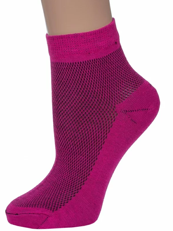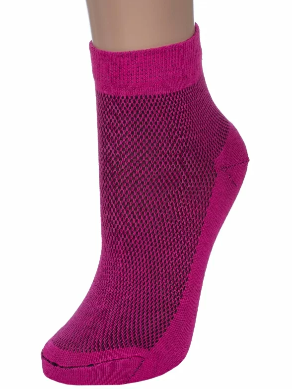 Летние короткие женские носки, цвет фуксия-розовый, в сеточку, шов обычный (не бесшовные), принт (рисунок): однотонный, состав: 80% хлопок, 18% полиамид, 2% эластан, арт. С82. Производитель «ООО Альтаир, г. Орск, Оренбургская обл, Россия» под брендом «Альтаир».