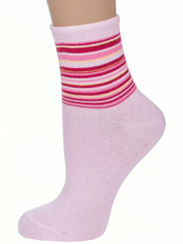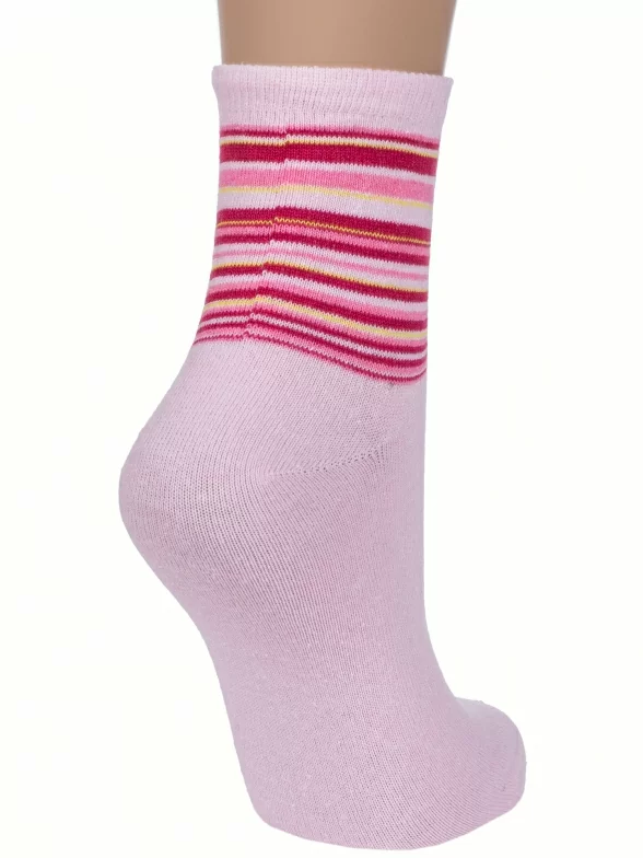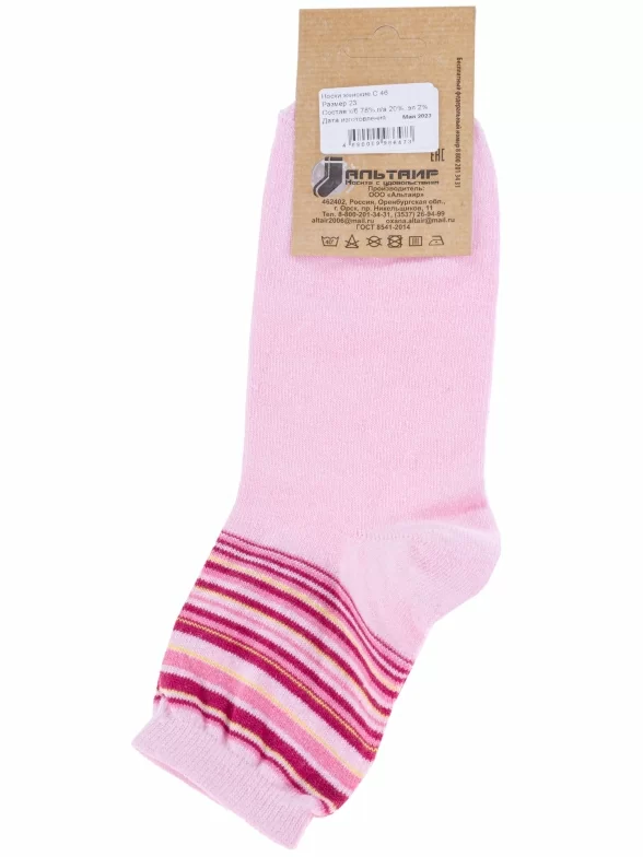 Круглогодичные укороченные женские носки, цвет розовый, классические, шов обычный (не бесшовные), принт (рисунок): полоски, с узором, состав: 78% хлопок, 20% полиамид, 2% эластан, арт. С46. Производитель «ООО Альтаир, г. Орск, Оренбургская обл, Россия» под брендом «Альтаир».